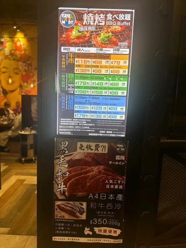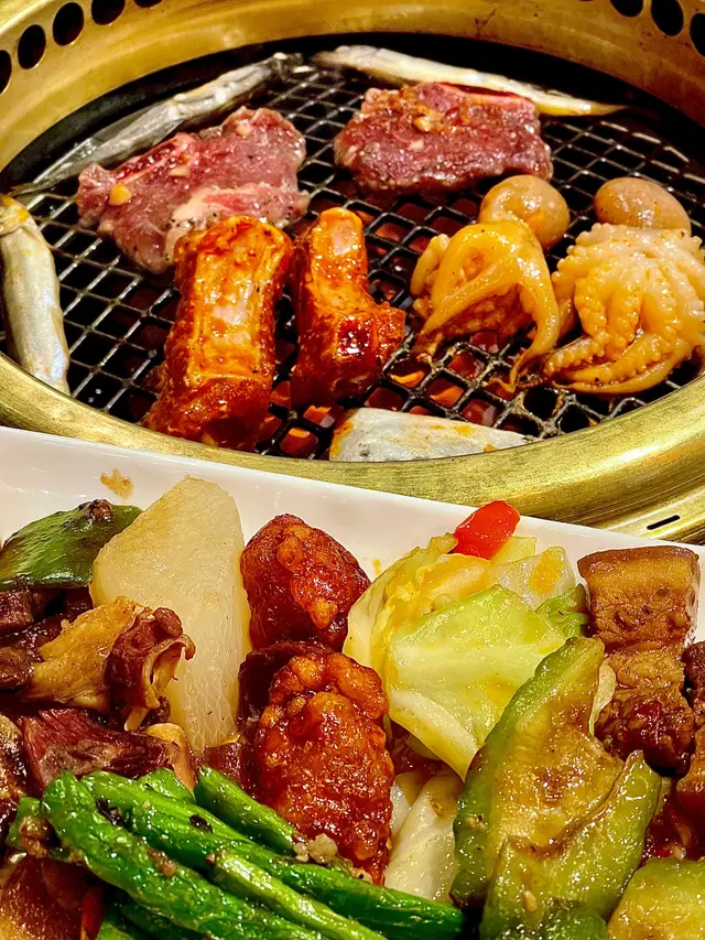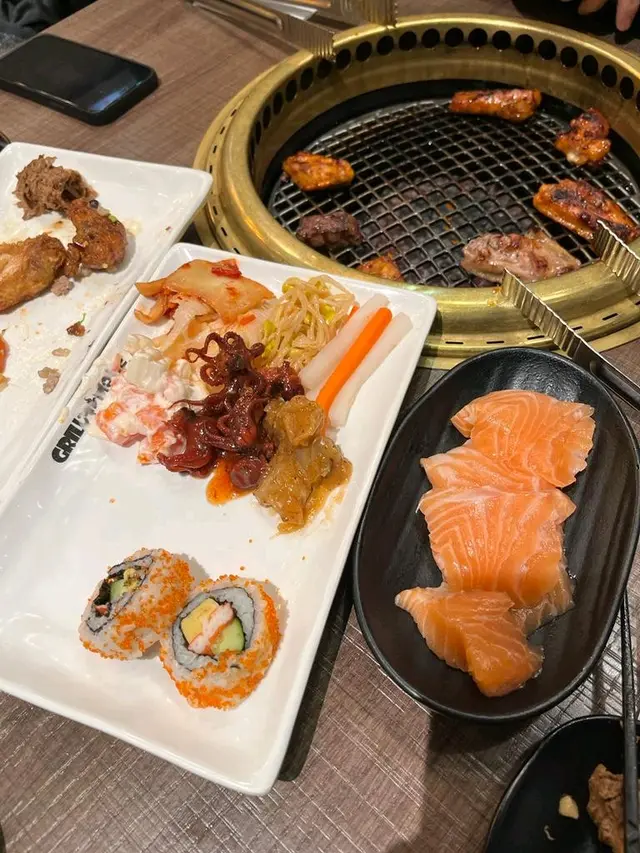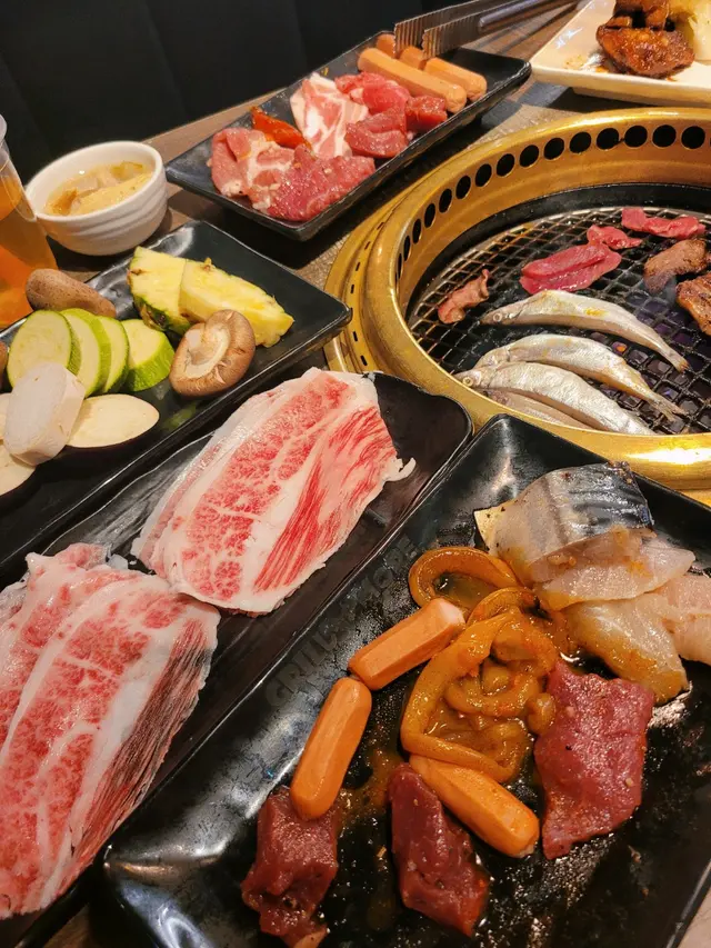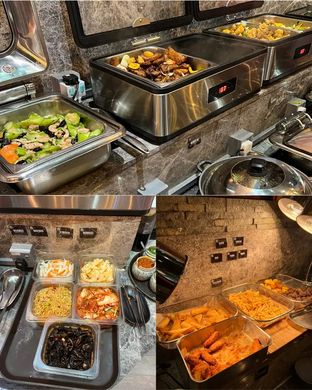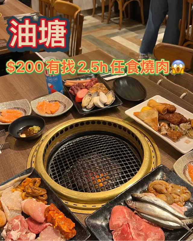 這裡主打韓式燒烤,除了一大堆生的食材可選擇外,其實還有很多熟食可選,可能就是因為這裡還有在做兩餸飯的關係!燒烤放題(5:30—10:00PM)(198元/人)單是熟食熟就有十幾款可選,各式中式小菜,如生炒骨,燉牛腩,炒排骨,班腩等,還有炸物可選!最好的地方還可我喜歡的無骨鳳爪!而主角韓式燒烤,常見的種類都有,其中我比較喜歡吃這裡的牛肋骨,牛舌,豬仔骨和蜜汁叉燒,調味都挺吸引的,吃起來也不會沾其他調味料也夠味了,當然重口味人士還可以沾燒肉汁了!飲品方面,這裡有個台式飲品配料的地方,有珍珠,紅豆,爆珠等給你加進飲品內,算是挺特別的,小朋友最愛!雪糕比想像中多選擇,味道也很多款,我都有吃到,能吃過癮!A4和牛(額外加錢)看到這裡有做優惠就額外點來試試,油花不錯,吃起來非常嫩滑,是真的日本和牛!…查看更多