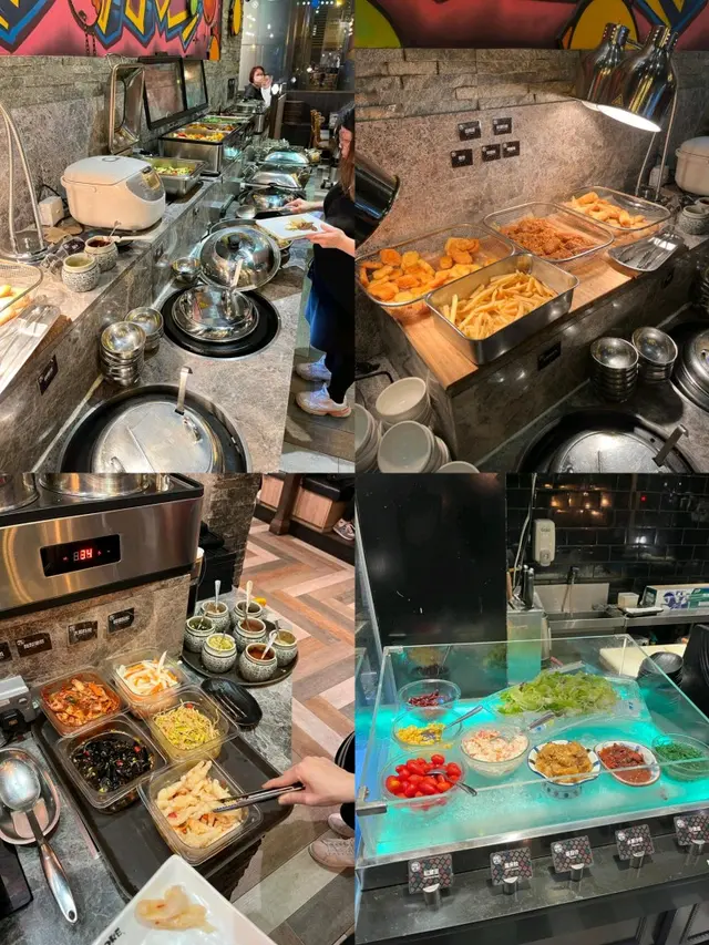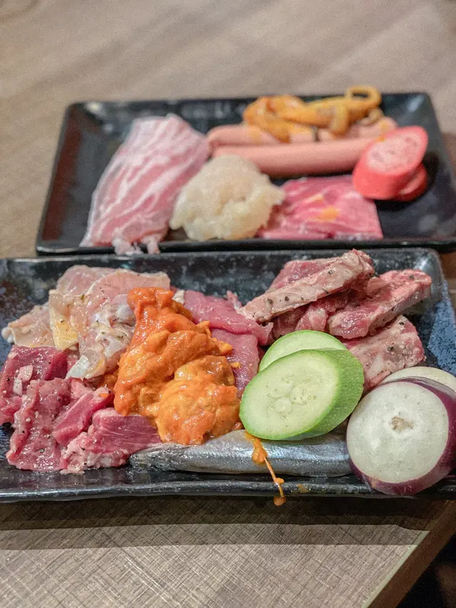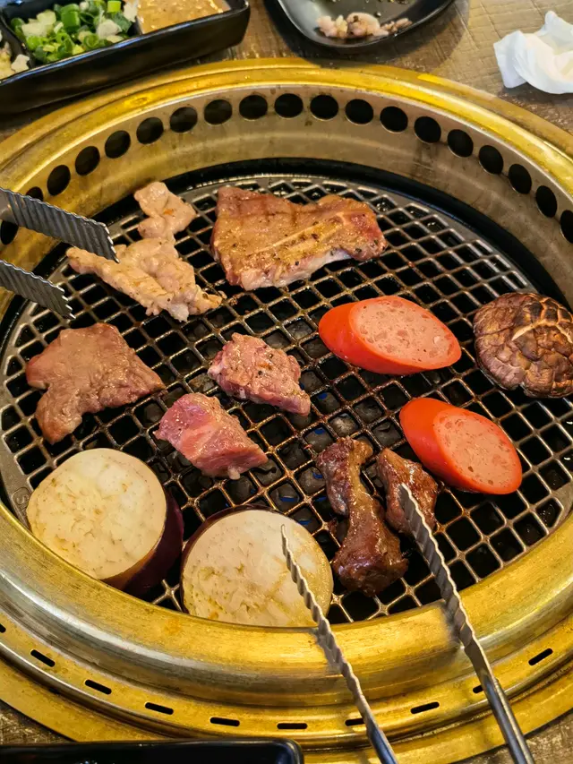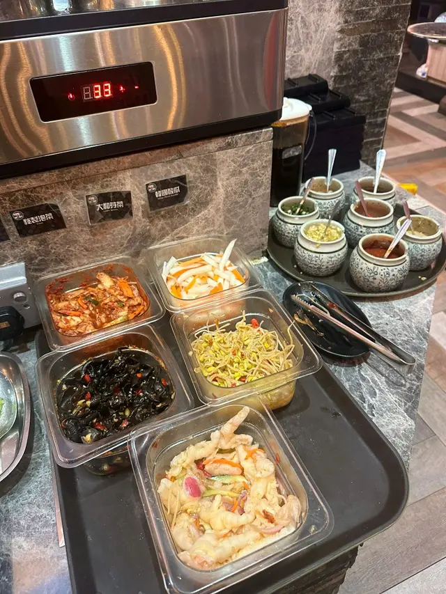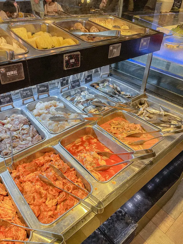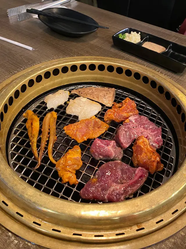 這裡主打韓式燒烤,除了一大堆生的食材可選擇外,其實還有很多熟食可選,可能就是因為這裡還有在做兩餸飯的關係!燒烤放題(5:30—10:00PM)(198元/人)單是熟食熟就有十幾款可選,各式中式小菜,如生炒骨,燉牛腩,炒排骨,班腩等,還有炸物可選!最好的地方還可我喜歡的無骨鳳爪!而主角韓式燒烤,常見的種類都有,其中我比較喜歡吃這裡的牛肋骨,牛舌,豬仔骨和蜜汁叉燒,調味都挺吸引的,吃起來也不會沾其他調味料也夠味了,當然重口味人士還可以沾燒肉汁了!飲品方面,這裡有個台式飲品配料的地方,有珍珠,紅豆,爆珠等給你加進飲品內,算是挺特別的,小朋友最愛!雪糕比想像中多選擇,味道也很多款,我都有吃到,能吃過癮!A4和牛(額外加錢)看到這裡有做優惠就額外點來試試,油花不錯,吃起來非常嫩滑,是真的日本和牛!…查看更多
