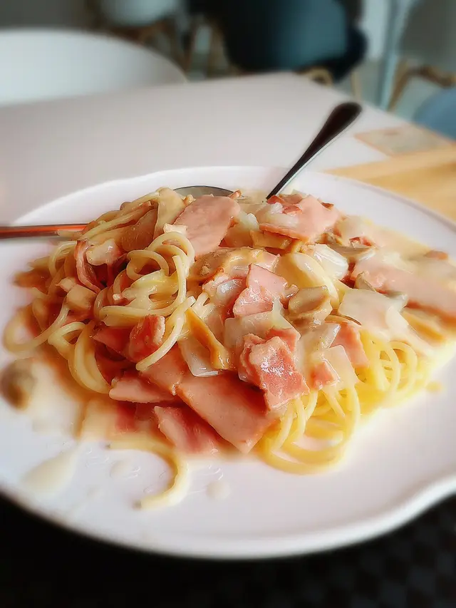 This is a self serve cafeteria. A cashier takes the order, customers are required to collect their food on tray. No announcement or notice will be given to collect the food so you need to stand by the kitchen counter and wait. After finishing, customers brought their trays back to the racks. No one clean the table.The foods are bland. Tried their ramen and ham & cheese croissant. The ramen tasted like instant noodle. The croissant was same as those you buy from 7-11. Their opening hours are unpredictable. The sign say open until 5:30pm but when we try to order at 4:40, they said they are closed. Guess that's what happened when the owner is not around. The cafe has wifi but not for customer's use as told by the staff. They don't seem to really care about their job or the success of the cafe. Too bad. It could have been a nice little hangout.…查看更多