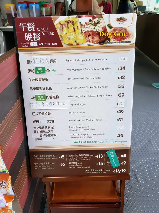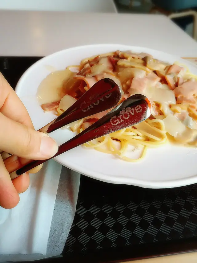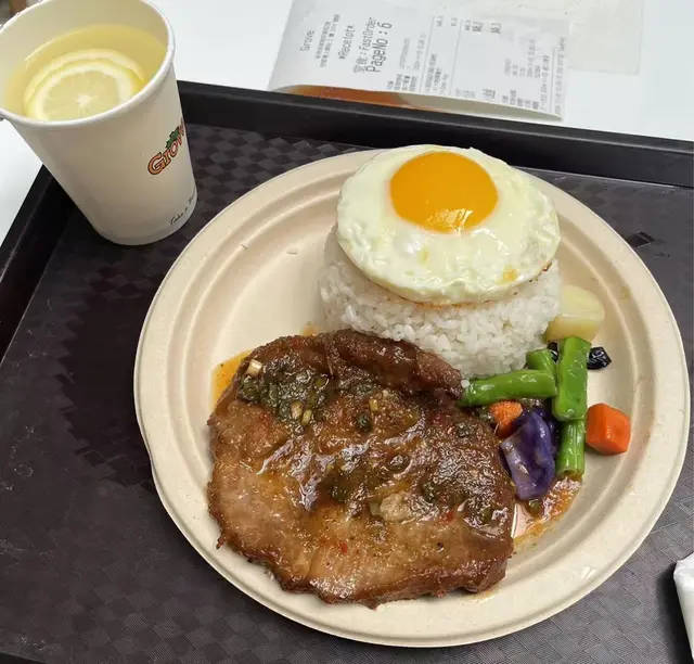 Grove Cafe除了在港九新界有分店外同時在三所大學/大專院校設店今次是在調景嶺這裡光顧啊~~據聞早餐所賣的麵包/三文治味道都不錯於是今次就外賣午餐試一試主要因座位不多而沒堂食呢!雞扒蕃茄湯螺絲粉+熱檸茶,共$32點餐後..會獲發提示機..燈號響起便能取餐飲品則在收銀機旁直接等店員沖好整個候餐過程約5分鐘餐具及調味料按需要自取雞扒蕃茄湯螺絲粉,蕃茄味濃雞扒算大塊,表皮煎得香脆肉雖不是嫩滑多汁,但也不會又粗糙又乾,算是ok螺絲粉的質感不會過稔~看外賣碗小小的,但份量是滿滿的,女生吃完都夠飽!熱檸茶就只是用茶包的茶啊~檸檬不澀都叫過得去了~CP值適中去大型連鎖快餐店外賣主食+熱飲,也較難便宜過$32了~…查看更多