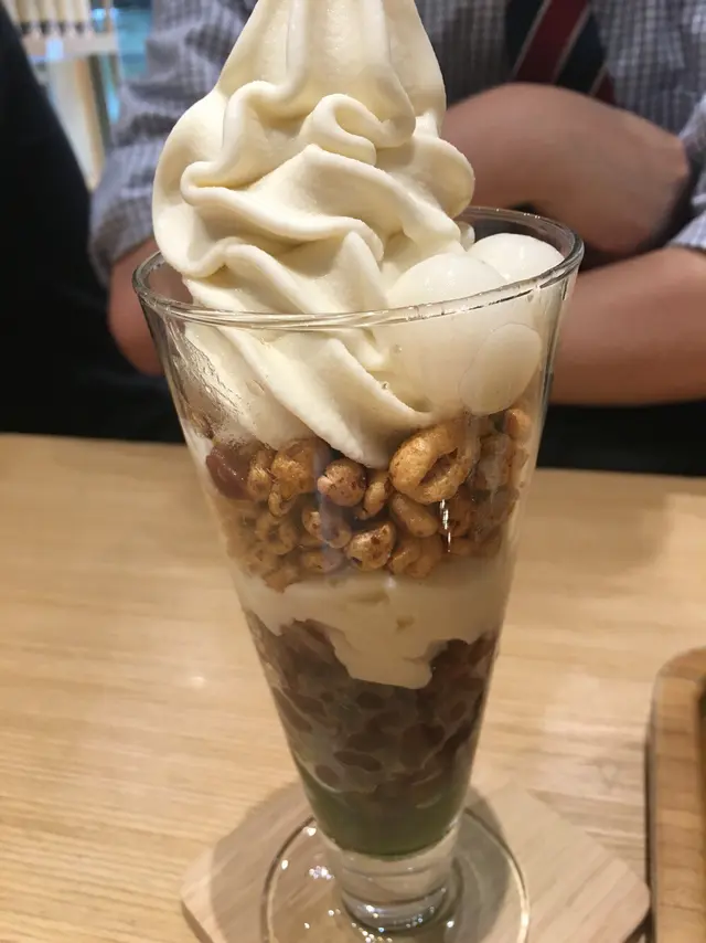 抹茶圣代一眼睇晒其实只不过系抹茶雪糕上面插咗块饼中间有啲蛋糕同粟米片最底有啲抹茶啫喱同样系雪糕份量少雪糕亦都欠缺抹茶味🍵买单计埋+1 180几蚊两个甜品都非常令人失望而且店员态度亦都比较差见你食完之后有一种不停赶你走嘅感觉真系櫈都未坐暖雪糕就溶咗跟住就俾人赶走