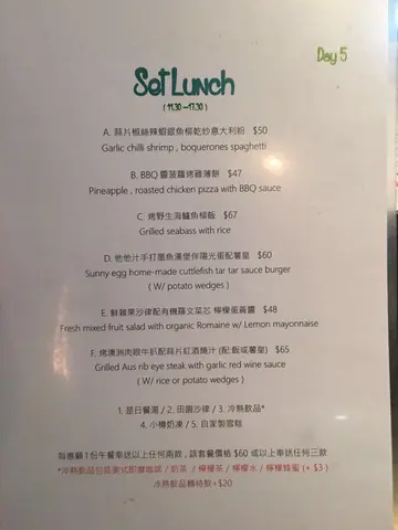前晚同三个朋友一齐去长沙湾觅食 去到先知原本想去既cafe 竟然搬左 于是唯有去附近兜下有冇其他食店点知一系就劲贵 一系就唔太吸引 最后见到呢间cafe出面写住第二碟main course 可享半价 咁又觉得好似几抵 就同朋友决定入去试试哇入面得一枱食客 犹如孤岛 我地都心感不妙😨 再睇下啲餐牌~ main course 贵之余 又唔太吸引 最后叫左猪仔骨、pizza、牛排同意大利海鲜炒饭 猪仔骨冇乜特别 普通味 但啲薯菜就几好食 好香薯仔味😋Pizza就认真麻麻 辣得黎又唔觉得惹味 而且个皮好薄好硬 好似食紧饼干咁😅至于个牛排真系冇乜特别 可能食材本身既质素就唔高 所以系普通牛肉味 又唔香又唔鲜嫩 唔会令你食过返寻味…查看更多