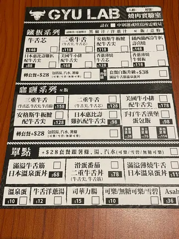 台风迫近, 归家前极速系附近食个Dinner, 去咗呢间主打牛舌嘅小店, 食过后令我一直回味这间餐厅嘅---- 牛舌芯!!!呢度供应各款不同部位嘅牛舌, 配搭扒类套餐, 自选升级套餐。【铁板 牛舌芯】HK$148+$38 零糖可乐, 温泉蛋牛舌筋, 汤, 薯条.自选了黑椒汁, 铁板热辣辣上台, 随即淋上黑椒汁, 铁板滋滋声, 香气四溢; 牛舌芯表面带微微焦, 但内里keep到粉嫩肉质, 爽口弹牙有肉汁, 沾上黑椒汁, 惹味无穷!!! 牛舌筋炆得好林而且入味, 口感有d 似牛腩, 仲有一笃即穿嘅温泉蛋, 蛋汁捞饭食, 更加黏滑。【咖哩 牛小排配牛舌尖配饭】HK$178+$28 零糖可乐, 汤, 薯条.同样系铁板餐, 本身已跟饭, 再加$28有埋可乐, 汤同薯条。牛小排鲜嫩, 连带些少油脂, 肉质有点咬口; 牛舌尖都几厚身, 爽口唔韧, 配埋咖哩汁, 捞饭食一流。 加配嘅洋葱汤, 足料清甜, 有助解腻。此为两个set嘅薯条, 加咗紫菜粉, 薯条脆而不油。…查看更多