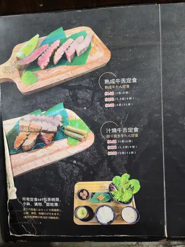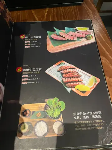 好友推荐这间牛舌专门店,这间餐厅也经常出现在土瓜湾区推荐食肆列表之中,今次终于有机会试试。假日晚间18:30左右到达(餐厅晚市18:00开始营业),等了15分钟左右便有得食。餐牌的食物款式不多,大部分都是牛舌料理,还有少量主食及串烧,不过当日所见基本上所有食客都是食牛舌。我们叫了最经典的极上牛舌定食及薄烧牛舌定食。