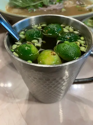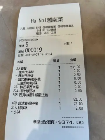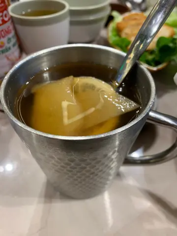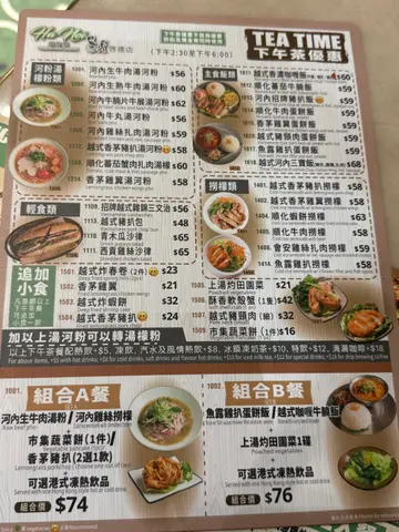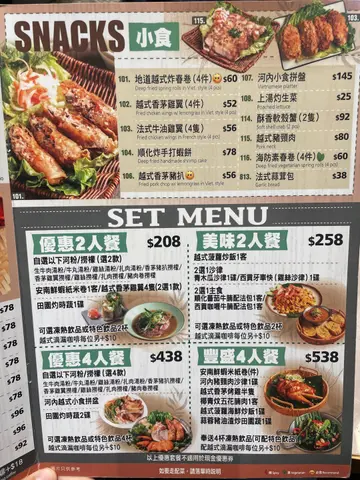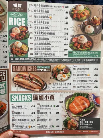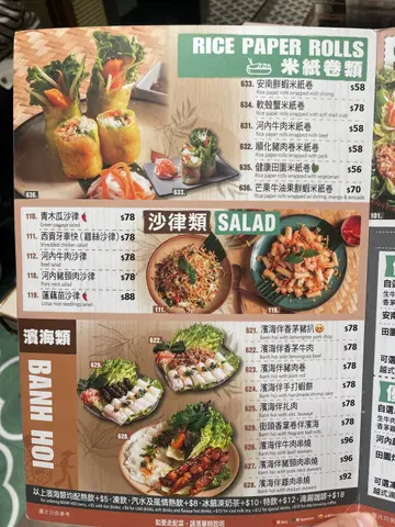 旧同事邀请到启德体育园享用晚餐,园内有很多餐厅,我们选择了越南菜,找到零售馆3的<Ha Noi越南菜>。餐厅门面以绿色为主调,配上越南传统的斗笠作装饰。店内环境阔落,灯光柔和,座位挺多。我们点了4 人套餐(香茅猪扒捞檬、猪肉卷捞檬、牛丸捞檬、鸡丝捞檬、河内越式小食拼盘、田园灼时蔬2碟和4杯特色饮品)、香茅沙嗲串烧(鸡肉)和白饭。河内越式小食拼盘~毎次吃越南菜,我都会点小食拼盘,小食款式多,份量又刚好。河内越式小食拼盘有地道春卷、越南扎肉、手打虾饼、香茅鸡翼、鲜虾米纸。我最喜欢吃地道春卷,脆卜卜外皮,满满馅料,放在新鲜生菜,包著吃不但不油腻,又健康又有口感。虾饼外脆内嫩,浓厚鲜虾味。香茅鸡翼炸得金黄香脆,肉质保留嫩滑多汁。鲜虾米纸很清新,薄薄的米纸皮很烟韧,包著鲜虾、薄荷叶、青瓜丝和米粉,味道很好。我们各人点了一碗捞檬,毎碗捞檬份量很大,除了主菜外,还有生菜丝、青瓜丝、红萝卜丝和炸蒜粒,加入酸辣越南酱汁/捞檬汁,特别醒胃。香茅猪扒捞檬~腌制的香茅猪扒很入味,猪扒厚度适中,外层煎得香,肉质软嫩滑溜不干身。牛丸捞檬~牛肉丸大小适中,共有10粒,朋友仔仔赞赏肉丸味浓,全部都吃光了。鸡丝捞檬~鸡丝份量比想像中多,肉质嫩滑,朋友可以把整碗捞檬吃光。猪肉卷捞檬~第一次吃猪肉卷,好像吃猪肉肠,份量不少,共有6条。猪肉卷咸味,与清淡檬粉很搭配。田园灼时蔬~两碟灼生菜,生菜新鲜翠绿,菜上放了很多炸蒜粒。香茅沙嗲串烧(鸡肉)~鸡肉烧得刚好,香又嫩滑,不干身,点微辣沙嗲酱特别惹味。蜂蜜柚子梳打、椰果椰汁西米露、青柠梳打和热情果冰~滋润蜂蜜柚子配上梳打出奇好喝;椰果椰汁西米露口感丰富,毎一口都能吃到椰果和西米露,椰汁味浓郁;青柠梳打有4片大大块青柠,朋友仔仔喝得很开心;热情果冰的热情果肉很多,酸酸甜甜,有助消化。最后,朋友仔仔想吃白饭,便点了一碗,这碗白饭比想像中多,挺满的。…查看更多
