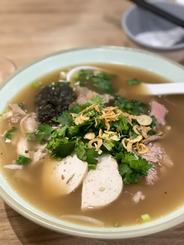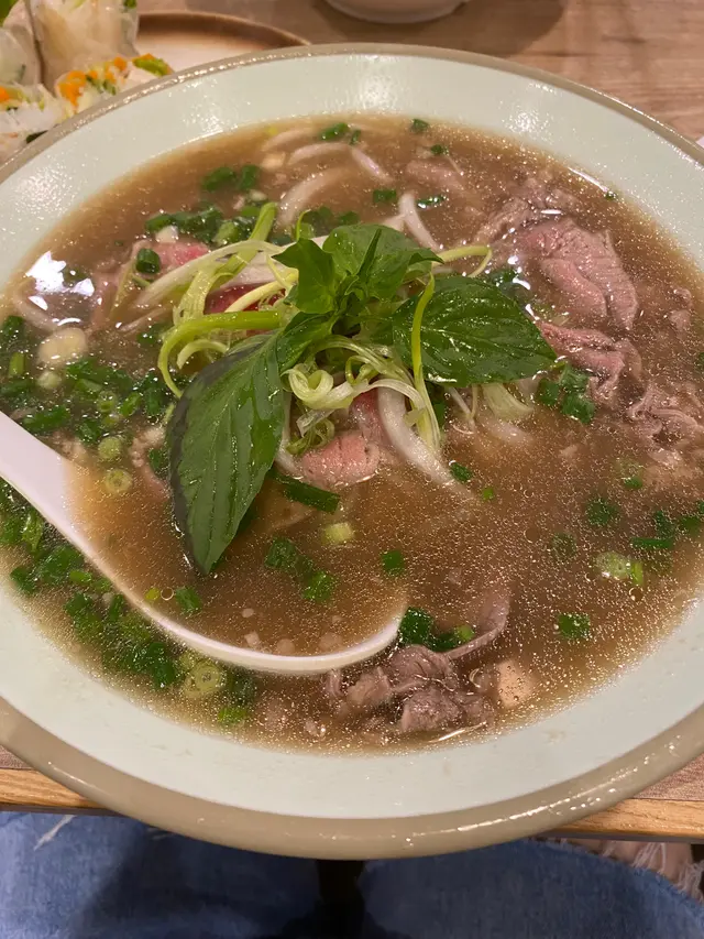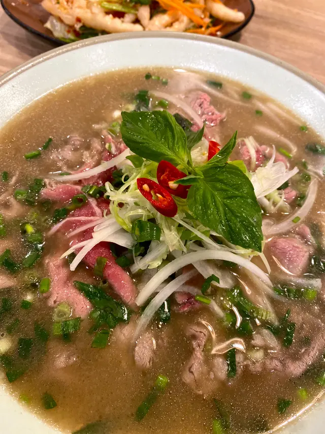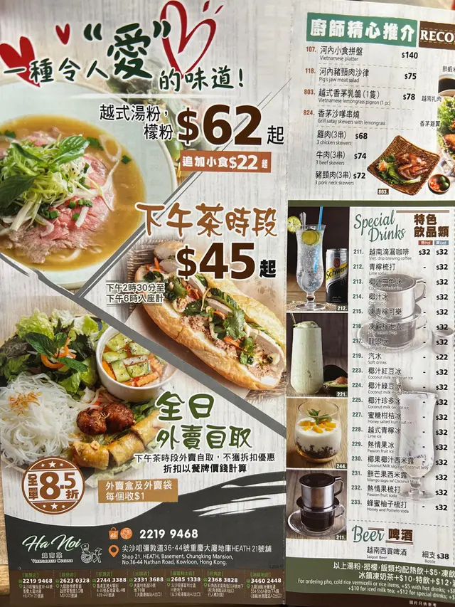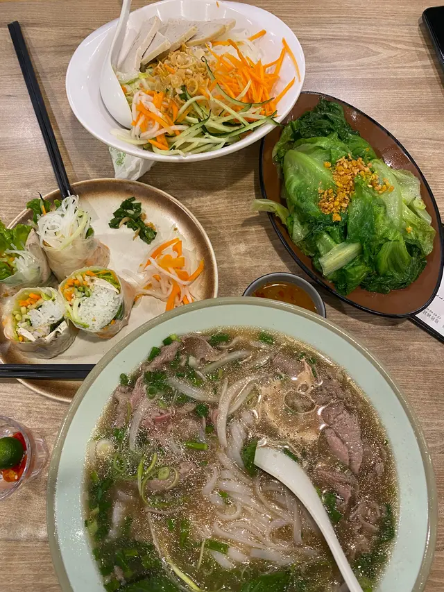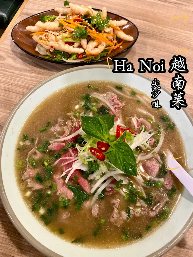 Hà Nội 越南菜今天在尖沙咀重慶大廈地庫河內越南菜用膳,嘗試咗一次美好的味覺之旅。*河內特色綜合河粉*這碗香氣四溢的綜合河粉是今日的第一道菜,份量好大,個湯底鮮甜牛骨嘅味道十足,生牛肉嫩滑,牛腩片軟嫩不膩,厚薄適中,牛味濃,扎肉彈牙,雞絲滑,香葉卷的加入為整碗湯粉增添了獨特的風味,肉卷上面用香葉包裹着,令人有齒頰生香的感覺。*越式炸蝦餅*每款粉麪飯都可以追加一款小食,看到餐牌上的炸蝦餅好靚,就叫咗一客,蝦餅外脆內嫩,蝦味十足,而且Q彈😋。*西貢法包拼盤*配料豐富,包皮香脆,有扎肉、青瓜、肉醬,把酸蘿蔔夾入個包內能提鮮,清新開胃;那兩根越式腸仔,咬落去肉味香濃,成個拼盤好有越南風味。*椰漿芒果糯米飯*椰漿、黑糯米飯配上鮮甜的芒果,絕對是驚喜!椰漿味十足,調教得好出色,夠濃郁,黑糯米有咬口,讓人回味無窮。即使不是芒果的季節,但係呢個芒果的質素也讓我驚喜,又新鮮又甜,實在值得一試。*越南滴漏咖啡*咖啡味道都算係濃郁芳香,容易入口,咖啡杯外型好靚,玻璃夠厚可以保暖,甜奶係分開上,唔飲甜嘢嗰啲客人都冇問題,幫襯任何粉麪飯用$18就可以追加👍。整體來講,河內越南菜不僅提供了多元化的出品,還有職員良好的服務態度,絕對值得再次光臨及試吓其他的菜式。…查看更多