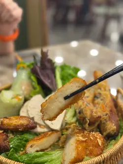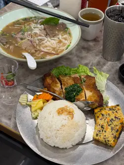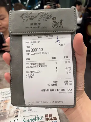 荃湾广场新开了越南菜,性价比都几高,还有2人或4人餐选择更抵食,员工态度亲切积极,换碟加水都很快手,有一大幅绿叶墙令环境更舒服,以铺砖技艺重现河内街角韵味,整体食物有水准,值得有下次😊🔸️香浓咖哩软壳蟹$128咖哩的香味浓郁,软壳蟹炸酥脆可口,沾上咖哩汁又多一层味道。🔸️法式蒜茸包$38有咖哩怎可少了蒜茸包呢,另外点了一份,法包焗得酥脆内软,散出浓郁蒜茸香味,把法包浸满咖哩汁后进食,幸福感倍增🤩🔸️滨海伴猪颈肉串烧饼$96猪颈肉烧得很香,点了酱汁有少辣很惹味,用生菜包住滨海,酸萝卜丝,烧猪颈肉,加埋鱼露一起食,减底油腻感之余又添加了口感,十分美味😋🔸️香茅鸡翼$23热辣辣香喷喷的香茅鸡翼外皮烤的金黄脆口,内里肉嫩多汁🤤🔸️椰浆芒果紫糯米饭$78紫糯米饭热辣辣出场,咬落去有嚼劲,芒果略慊生了少少未够甜🤪 欣赏椰浆分开上,想落几多就自己决定😋 为是晚画上完美号😊🔸️牛油果沙冰$38炎炎夏日,沙冰入口透心凉😋不甜饮到淡淡的牛油果味够晒健康😊🔸️越南滴漏咖啡+$18慢慢欣赏每一滴嘅咖啡,香浓带点苦味,超欣赏这里炼奶是分开上的👍甜度可自控👍…查看更多