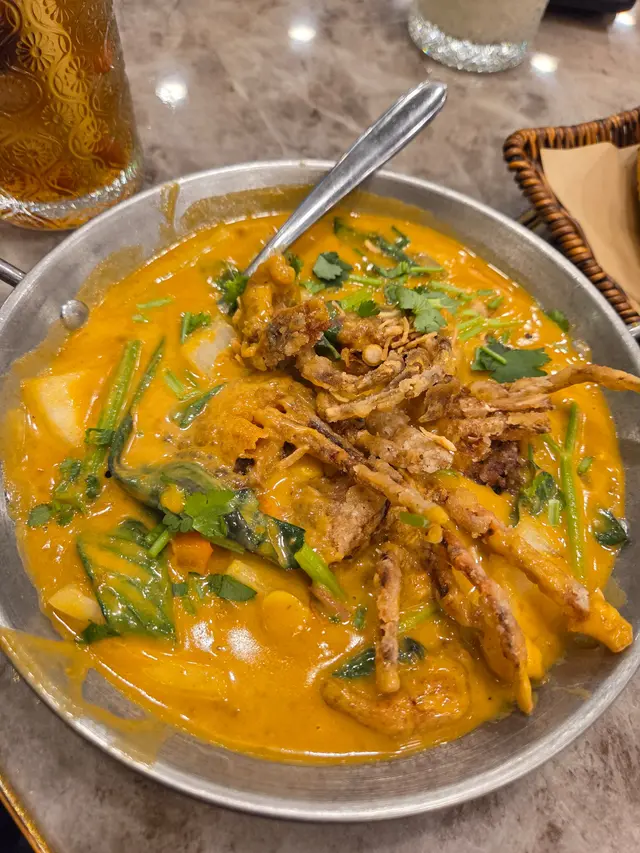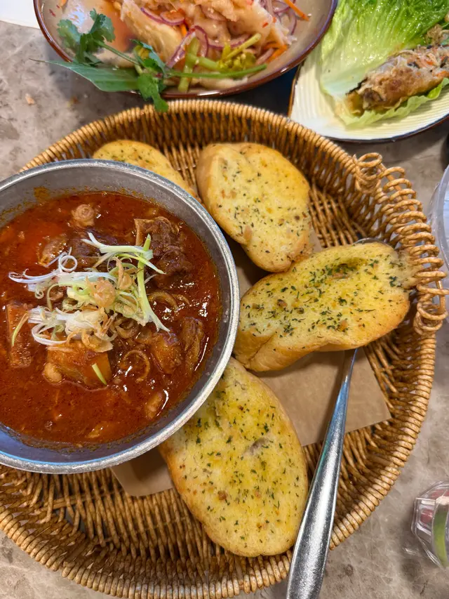 荃灣廣場新開了越南菜,性價比都幾高,還有2人或4人餐選擇更抵食,員工態度親切積極,換碟加水都很快手,有一大幅綠葉牆令環境更舒服,以鋪磚技藝重現河內街角韻味,整體食物有水準,值得有下次😊🔸️香濃咖哩軟殼蟹$128咖哩的香味濃郁,軟殼蟹炸酥脆可口,沾上咖哩汁又多一層味道。🔸️法式蒜茸包$38有咖哩怎可少了蒜茸包呢,另外點了一份,法包焗得酥脆內軟,散出濃郁蒜茸香味,把法包浸滿咖哩汁後進食,幸福感倍增🤩🔸️濱海伴豬頸肉串燒餅$96豬頸肉燒得很香,點了醬汁有少辣很惹味,用生菜包住濱海,酸蘿蔔絲,燒豬頸肉,加埋魚露一起食,減底油膩感之餘又添加了口感,十分美味😋🔸️香茅雞翼$23熱辣辣香噴噴的香茅雞翼外皮烤的金黃脆口,內裡肉嫩多汁🤤🔸️椰漿芒果紫糯米飯$78紫糯米飯熱辣辣出場,咬落去有嚼勁,芒果略慊生了少少未夠甜🤪 欣賞椰漿分開上,想落幾多就自己決定😋 為是晚畫上完美號😊🔸️牛油果沙冰$38炎炎夏日,沙冰入口透心涼😋不甜飲到淡淡的牛油果味夠曬健康😊🔸️越南滴漏咖啡+$18慢慢欣賞每一滴嘅咖啡,香濃帶點苦味,超欣賞這裡煉奶是分開上的👍甜度可自控👍…查看更多