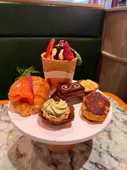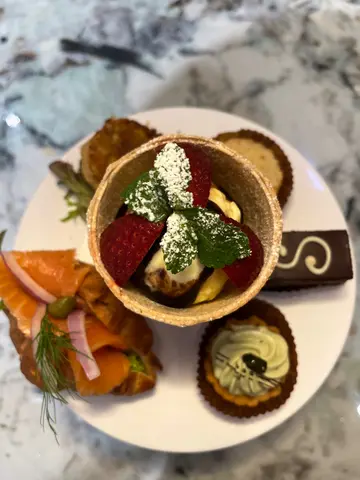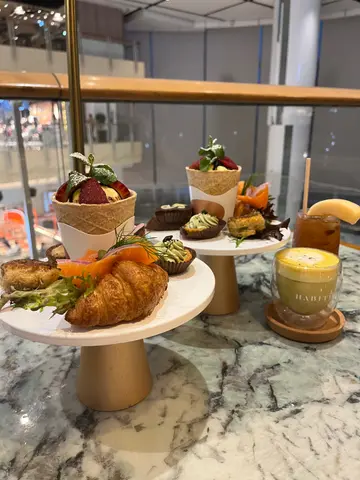 品尝了一个性价比高,却又一丝不苟的下午茶☕️雪糕上的士多啤梨粒薄荷叶、糖霜装饰、蟹饼上的干玫瑰花瓣和 下面的菠菜,牛角包上的叼草,处处流露着精致的细节位,每一款都带来了独特的风味和口感!餐厅以勃艮第红墙身作主色调,营造出温暖、精致的氛围,深沉的色调带来奢华感,配搭柔和灯光增添优雅和古典魅力。Afternoon tea set $128•••••••••••••••••••••••Gelato in Waffle Cup意大利雪糕杯朱古力口味嘅意式雪糕,口感浓郁扎实,棉密丝滑!Smoked Salmon Croissant 烟三文鱼牛角酥烘得酥脆的牛角包🥐夹著咸香的烟三文鱼,带来了丰富的层次感。Homemade Crab Cake蟹饼外面煎得香脆,内里鲜嫩多汁蟹肉鲜甜味美,六款之中我最钟意这个咸点😊Sacher Cake 奥地利朱古力蛋糕蛋糕质地细腻感受到朱古力的醇厚甜蜜。Pistachio Tart 开心果挞坚果香气浓郁,甜度适中,令人愉悦的甜点。Apple Crumble 苹果金宝苹果清香,甜酸平衡,与肉桂味道系天作之合!热柠茶冻朱古力+$16…查看更多