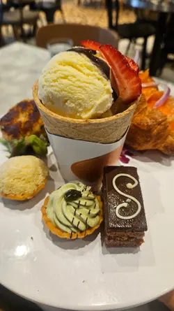 夜晚 同皮姐庆祝周年纪念日💓去咗 奥海城嘅咖啡厅食晚饭🍽️环境舒适 菜单嘅食物种类多📋食物嘅种类多 整体性价比高🫶🏻即使价钱下调 食物质量唔变🙈听讲热卖嘅都有减价 劲抵食🤫叫咗 我最爱嘅全日早餐啊唷😍当然 叫埋皮姐最爱嘅薄饼啦😌-❤️Classic All Day Breakfast ($148)❤️经典全日早餐 ($148)系我嘅最爱 卖相真系好丰富🌟整体份量好足够 幸福感满满🔥-🧡Pappardelle Al Funghi ($52)🧡黑松露野菌忌廉阔蛋面 ($52)味道香浓 食落好有咬口🍝-💛Smoked Salmon Pizza ($168)💛烟三文鱼薄饼 ($168)系皮姐嘅最爱 烟三文鱼好新鲜🐟皮薄香脆 配埋火箭菜食无得弹🍕-💚Puffy Apple Tart ($52)💚苹果酥饼 ($52)卖相好精致 面上有开心果味嘅意大利雪糕🍦配埋一片片嘅苹果饼底同 酥脆嘅黄金酥皮🍎估唔到咁夹 入口即融嘅感觉真系好特别啊💓同时形成完美的温度差 整体食落唔算太甜💯-🩵Iced Mocha Soy Milk ($52)🩵抹茶泡沫豆奶 ($52)抹茶香味浓郁 配埋豆奶嘅微甜 口感顺滑☕️…查看更多