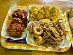 另外一个餐就要蒜香酱油味,酱汁多到完完全全包围住啲炸鸡,超级香甜