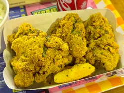 平时年糕系煲熟佢嚟食,炸年糕就比较少见,跟餐加几条试吓,试吓跟芝士炸鸡捞,脆皮烟烟韧韧咁,口感都几好咬口