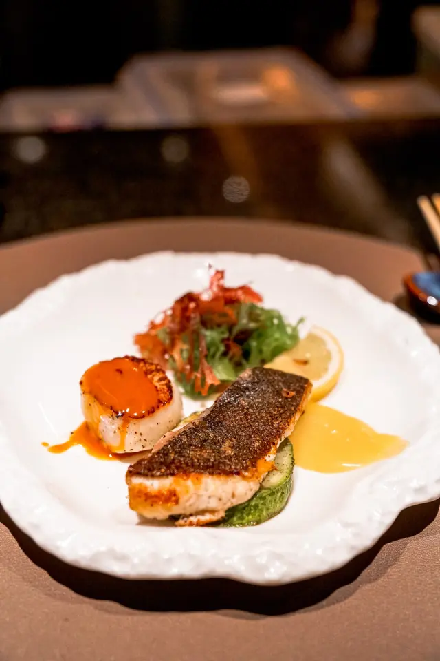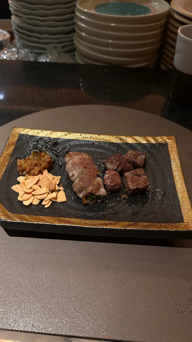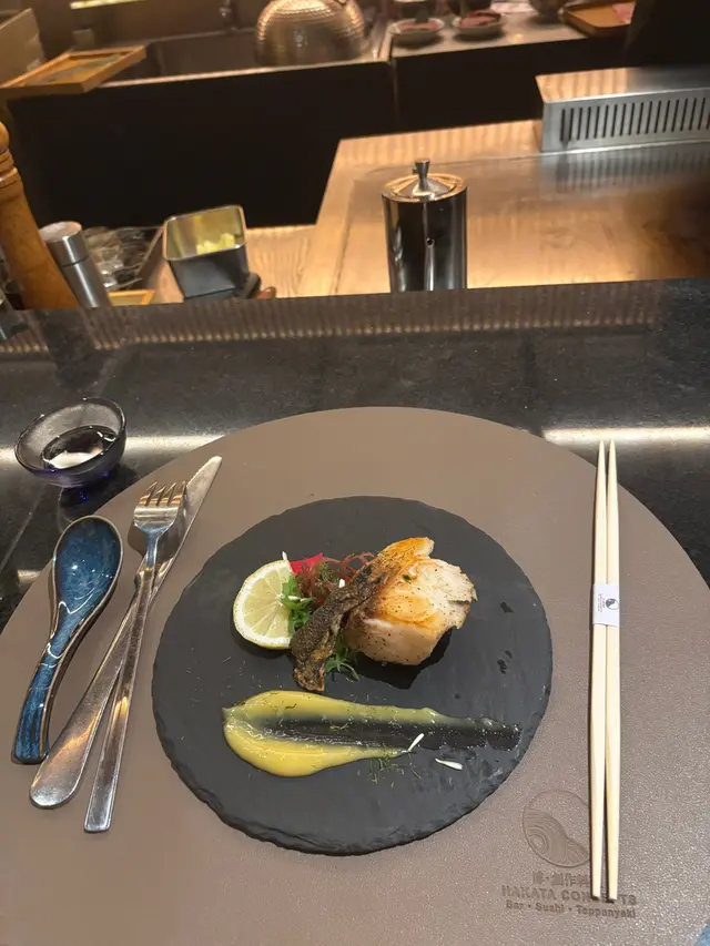 今日黎到屯門黃金海岸「Hakata Concepts」晚餐揀咗Teppanyaki Premium Set⭐️季節沙律新鮮的時令蔬菜及青提搭配清新的醬汁開胃又健康😆⭐️茶碗蒸口感滑順雞蛋的香氣與鮮味十分突出面頭加咗蟹籽 增加層次感🤩⭐️北海道帆立貝伴十年魚子醬帆立貝鮮嫩多汁魚子醬的鹹香與其完美融合讓人印象深刻😄⭐️本日魚料理配胡麻味噌和馬友的鮮味與胡麻味噌的香氣結合令這道菜色香味俱全非常好味👍🏻⭐️板燒大虎蝦配北海道根室海膽濃汁虎蝦的鮮甜肉嫩搭配海膽的濃郁😍令人回味無窮⭐️法式鵝肝伴焦糖蘋果配蜜柑酒醬鵝肝香滑焦糖蘋果的甜味與蜜柑酒的酸味為整道菜增添了豐富的層次十分出色🫶🏻⭐️主菜宮崎地雞肉質鮮嫩風味獨特😙火候控制得啱啱好⭐️美國安格斯牛小排牛肉質地柔嫩油花分布均勻燒烤的香氣撲鼻而來😉⭐️京野菜搭配的京野菜新鮮消除油膩感⭐️金平牛蒡、赤出汁牛蒡的香脆與赤出汁的鮮味非常配搭特別係麵豉湯非常濃郁☺️⭐️炒飯炒飯粒粒分明作為餐後的配菜非常滿足⭐️甜品 本日甜品係開心果雪糕十分驚喜為整個用餐體驗畫上完美的句號😊…查看更多