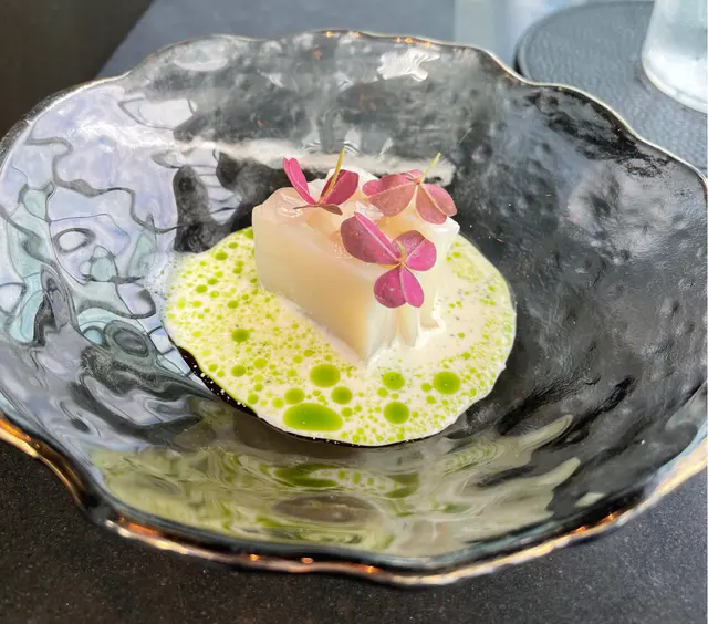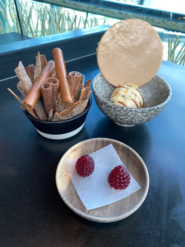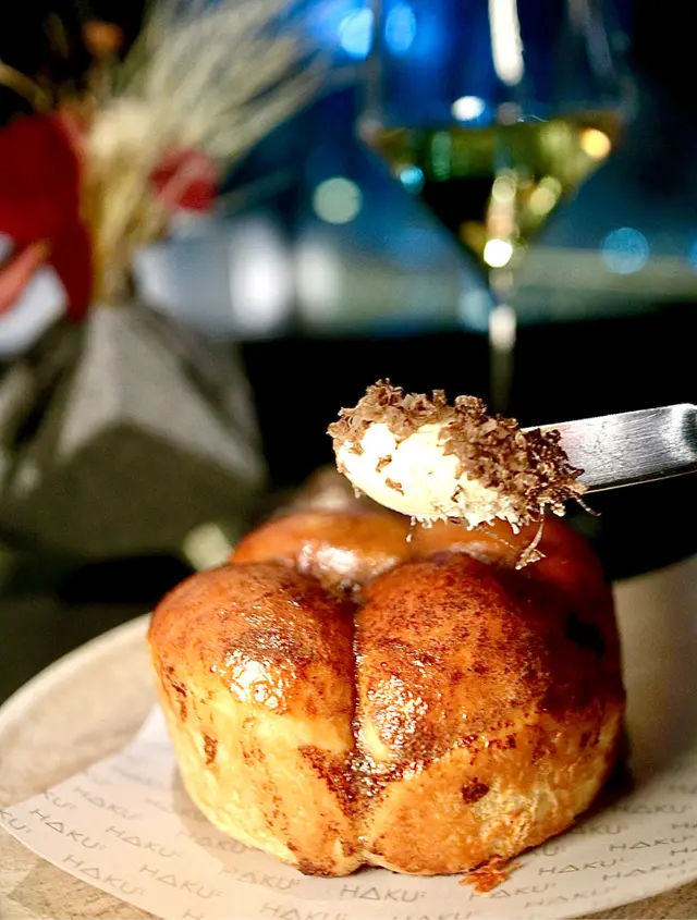 📍 HAKU📍 中環 𝗖𝗲𝗻𝘁𝗿𝗮𝗹 • 國際金融中心商場 (IFC) 4樓4011號舖〔 Follow me on instagram @sikbaobaola ! ^^ 〕-Simply enjoyed our dinner here. The tasting menu was well designed and well executed, with top grade ingredients sourced from all over the world as well as Hong Kong local farmers. Especially enjoyed sitting at the chef counter and looking at a team of chefs collaborating and preparing food for us under the supervision of Executive Chef, Rob Drennan, with mesmerizing views over the Victoria Harbour as backdrop.-HAKU's menu is curated by Chef Rob Drennan in a way that combines Western and Japanese cooking techniques. Chef Rob Drennan, with experience at a three-Michelin-starred restaurant in Norway, designs dishes that are rich in complexity and flavor as well as the perfect sauce to pair.The bread course, the Parker House rolls, in particular, was worth a thousand wow-s. It was toasted with black garlic butter and served with homemade whipped brown butter with shaved Australian black winter truffle on top. Super unforgettable. The [ otoro tart ] appetizer and the [ purple sweet potato ice cream (made with locally grown produce!) ] were also two of my personal favs.-(𝗦𝗲𝗲 𝗽𝗶𝗰𝘀 𝗯𝗲𝗹𝗼𝘄! ☟☟)=維港景色、美味fine dining、優質服務 - 絕倫的享受~這天晚上,就在位於IFC的《HAKU》享受了這麼完美的一頓晚餐而且還享用了半價優惠😍(詳情請留意文章最後部分)-《HAKU》位於IFC四樓空中花園,設有chef's counter 開放式廚房還有落地玻璃窗,讓食客欣賞廚師們烹調美食的同時,也可以飽覽維港景色另外還設有一般餐桌還有私人包廂-廚師團隊由行政總廚Rob Drennan帶領 - 他在挪威米芝蓮三星餐廳的經驗絕對是信心保證菜單融合了西日料理和食材,配上互相襯托的時令食材、醬汁配搭,還有超有心思的擺盤,每一道菜都有滿滿視覺跟味覺驚喜這晚吃的嚐味菜單共有12道菜,承惠每人$1,680;二人同行,更有一人免費!-每一道菜都令人印象深刻,尤其是混合黑蒜牛油製成的Parker House roll,味道超級香!!另外也有wine pairing ($780/五杯)或zero pairing ($380/五杯)的選擇,也太划算!-Otoro tart首先以兩道前菜打開味蕾Otoro大拖羅以紫菜撻皮盛載一口咬下,先是撻皮的香脆,再來是拖羅的油潤佐以鹹鮮的ama soy jelly和微辛的芥末油層次相當豐富同行友人對這道念念不忘呢•Zabuton tartare另一道是和牛他他多士配上smoked pike roe牛肉用上沙巴當多士牛油香氣濃郁,好好吃•Clisson Muscadet Sevre et Maine 2020- Melon de Bourgogne•Kanpachi鱆紅魚刺身配上薑、乾蔥、coconut spicy vinegar然後表面蓋上一塊椰子啫喱;最後倒入炭味忌廉這麼多元素加起來,卻沒有蓋過鱆紅魚本身的魚鮮味鱆紅魚切成小塊,肉質爽口吃上去,薑味滿突出,反而椰子感覺不濃烈•Hokkaido scallop北海道帆立貝刺身非常新鮮,肉厚、肉質細嫩配上萵筍,加上青檸汁、青檸果皮、青瓜啫喱最後加入三杯酢 (Sanbaizu sauce) (白醋、醬油、味醂混合而成的醋)跟roasted garlic oil•Firefly squid餐牌的firefly squid指螢光魷魚;師傅上菜時則介紹其為槍魷魚品種名字都是其次,主要是味道賣相都好好!看上去彷彿看見幾條蛇 哈哈🐍魷魚經過低溫慢煮30分鐘,能保持其鮮味跟彈牙肉質配上數款特調醬汁 — 炭香tare sauce (醬油)、焦化洋蔥、甜醋啫喱另外還有紫蘇葉 •Chawanmushi茶碗蒸表面放上了北海道三文魚子、北海道馬糞海膽海膽以山椒粉調味;另外還加入了山椒葉,加點辛味質感滑滑溜溜,味道不算有驚喜,但心思滿滿•Parker House超!級!好!吃!是我吃過最好吃的餐包之一啊...餐廳自家製黑蒜麵包,在食客進食前一刻才新鮮出爐、熱烘烘的上桌外層薄脆、內層鬆軟,口感一流!用上黑蒜牛油製作,牛油是非一般的香😍配上餐廳自家製的whipped brown butter,上面切上海量松露(採用澳洲冬季黑松露),香氣四溢令人印象深刻的bread & butter~•Sablefish來自日本的銀鱈魚~配上由燒魚骨、松露油、清酒等混合而成的醬汁肉質嫩滑、啖啖肉,輕輕調味,帶出魚香上面放上好多Oscietra caviar 魚子醬;另外還有帶有生蠔味道的oyster leaf,滿滿的海洋感覺~•Signature King Crab (+$330)挪威皇帝蟹~厚肉、鮮甜🦀表面掃上tare sauce一同焗製,加上fingerlime caviar 手指檸檬再配搭加入了由龍蝦湯、忌廉、蟹油混合而成的醬汁,鮮味十足!•Pigeon乳鴿以牛油煎香,配上黑喇叭菇purée、紅菜頭purée、四川花椒醬最後倒上以乳鴿骨、紅桑子醋混合而成的醬汁•Short rib(可以升級為A4和牛)來自美國的牛仔骨,先用蘋果木煙燻,再用上36小時慢煮肉質軟腍、肉汁豐富,配上牛味香濃的醬汁,令味道更上一層樓!配醬同樣多樣 — 柚子胡椒、洋蔥、roasted garlic、黑蒜洋蔥purée最後倒入以大量牛筋、牛骨熬製,最後加入sherry vinegar調味的醬汁•Cherry鹹食吃畢,先來一道pre-dessert清清舌頭車厘子青檸雪葩酸酸甜甜,輕輕緩解吃完主食的飽膩感,更多的是啟動「甜品胃」🤣表面有車厘子葉油、青檸果皮,再加入食用乾花和液態氮賣相一流,還提高冰涼感🧊•Purple sweet potato超級喜歡這道雪糕!紫薯味道超香超濃,是採用了香港本地有機農場種植的紫薯呢💜加入了日本3.6牛乳製成雪糕,入口順滑雪糕上插上脆脆的紫薯蛋白餅、碗邊鋪滿紫薯粉,每一口都是香香的紫薯味道呢💜紫薯迷肯定愛!下面還有sherry toffee,個人覺得可有可無啦😝•Sweets最後的最後,再來一點甜~首先是我最愛的瑪德蓮蛋糕!加入了日本味噌,吃起來也帶微微的鹹味;表面也裹上了一點味噌糖,味道滿特別黑色一條