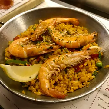 呢间西班牙菜听讲好正宗,今日同个friend系附近行街,到左饭点,就入来呢边食个lunch,两个人点左份春鸡脾肉痛海鲜饭虾肉,鸡脾肉唔算好大块,但鸡肉好滑好香,上边铺左滴辣椒圈,但唔会好辣,反而有小小麻,刺激味蕾。个海鲜饭虾肉好多,汁浓,饭咸左小小,但都好好食。最后点左份焦糖布丁做饭后甜点,完美。…查看更多