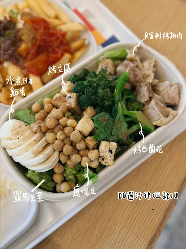 自選沙律 (5款:自家制烤雞肉 水煮日本雞蛋 烤西蘭花 烤豆腐 鷹嘴豆 配意大利黑醋醬 羅馬生菜)