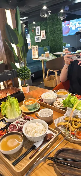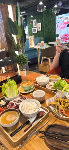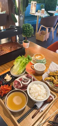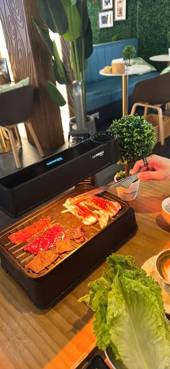 Hidden in a home appliance and cookware store, this restaurant allows you to literally test their grill machines by providing you food. You can try out their German Pool products and have a meal at the same time. This is probably one of the smartest and most innovative ideas I have witnessed so far - absolutely genius. Besides the game-changing dinning experience, the overall atmosphere was quite contrasting, as the eating area itself was kinda dark, while everything else around it (the selling section and the windows) was very bright, which for sure took a while for my eyes to adjust.Along came the food, and my gosh is it cheap. For a lunch set of Korean Barbecue Meats it only costed each person around $88-98, and they gave quite a sufficient amount of servings of pork/beef too. This is quite cheap for an average location in Hong Kong, but I guess the main goal for this establishment is to encourage you to buy their products instead of focusing on serving outstanding quality food.To start, the latte, mushroom soup, and fried calamari were insanely good. I really enjoyed the chunky bits of mushroom since it reflected the staff using freshly chopped mushrooms rather than the typical creamy canned soup you find in Campbells. The fried calamari was nice too, and its crunchiness was a great contrast to the meats we were having.The main course was not only well priced, but absolutely delicious as well. I really enjoyed the variety of side dishes we had, and I never had a single issue with using the grill despite using it for the first time. The staff took meticulous craft in the portioning of each food item, and I felt full satisfied and satiated with ever dish. The pork belly in particular was my personal highlight: well marinated, fatty, and juicy. Overall, for sure a place I will try to visit again anytime in the future, and who knows maybe I WILL BUY THAT GERMAN POOL GRILL MYSELF!!??…查看更多