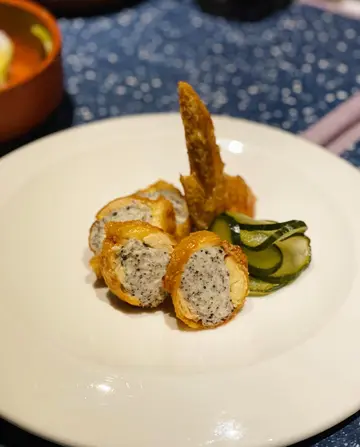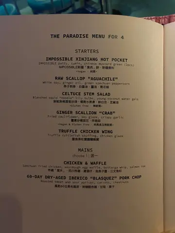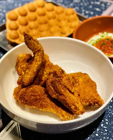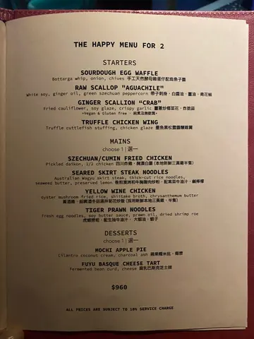 一向十分喜欢依间中西fusion餐厅🫶🏼 不过好可惜佢哋做埋今个月就唔做啦🥲 抵食推荐四人餐 可以一次过试晒signature dishes🌟 私心最爱嘅有: 👉🏻 姜葱炒椰菜花 非常有趣兼好食嘅菜式 系姜葱炒蟹嘅概念❗️ 夹埋面头嘅炸脆蒜一齐食 食完一碟要追加😹 👉🏻 炸鸡「窝夫」🌟 四川炸鸡辣得惹味🍗 咬落嫩口多肉汁 配招牌油香”鸡蛋仔” 可以点乌鱼子酱三文鱼籽spread食🤘🏼 👉🏻 风干60日黑毛猪排/烤糖醋杏脯/甘笋/栗子 肉味浓香口又冧身😻 极力推介 1️⃣ 香煎澳洲和牛胸腹肉炒粉/紫菜牛油汁/咸柠檬 2️⃣黄酒鸡/绍兴酒冬菇汤拌菊花炒饭 3️⃣ 炸鸡「窝夫」4️⃣ 墨鱼黑松露酱酿鸡翼 5️⃣ 风干60日黑毛猪排/烤糖醋杏脯/甘笋/栗子 6️⃣ 姜葱炒椰菜花/炸脆蒜 7️⃣ 苹果糯米批/ 椰浆 8️⃣ 5 Spice Gin & Tonic…查看更多