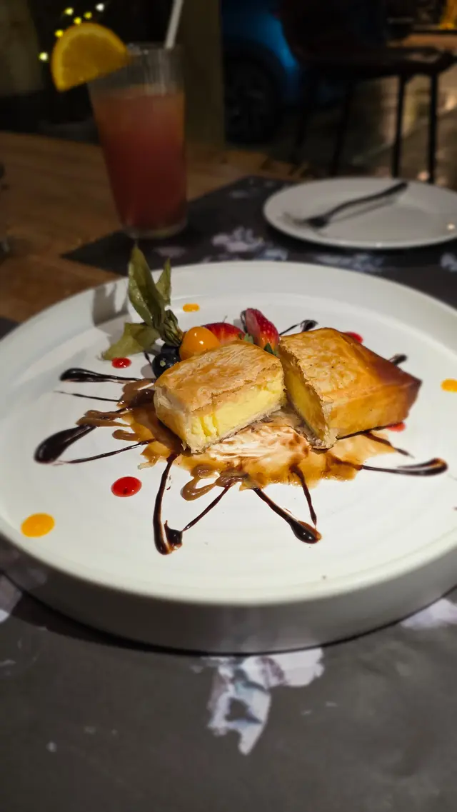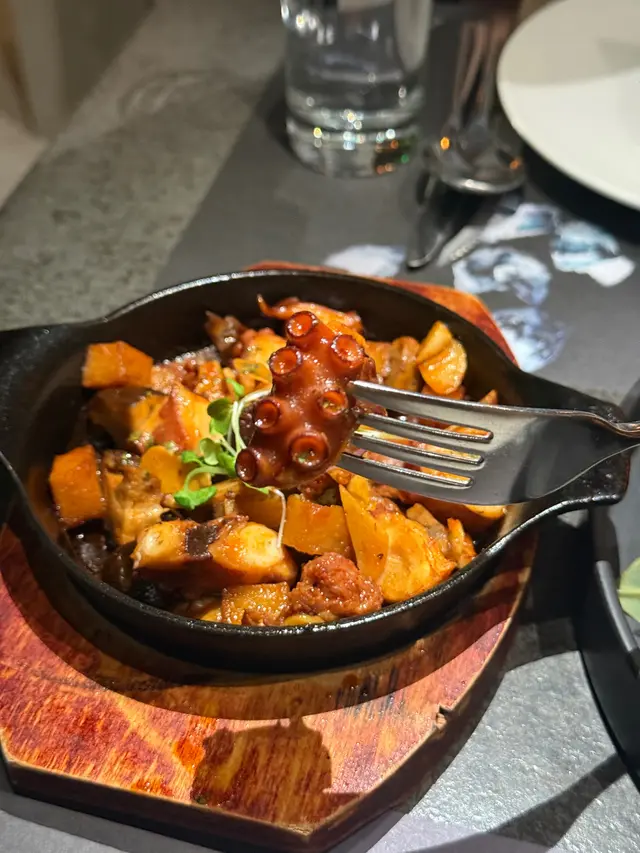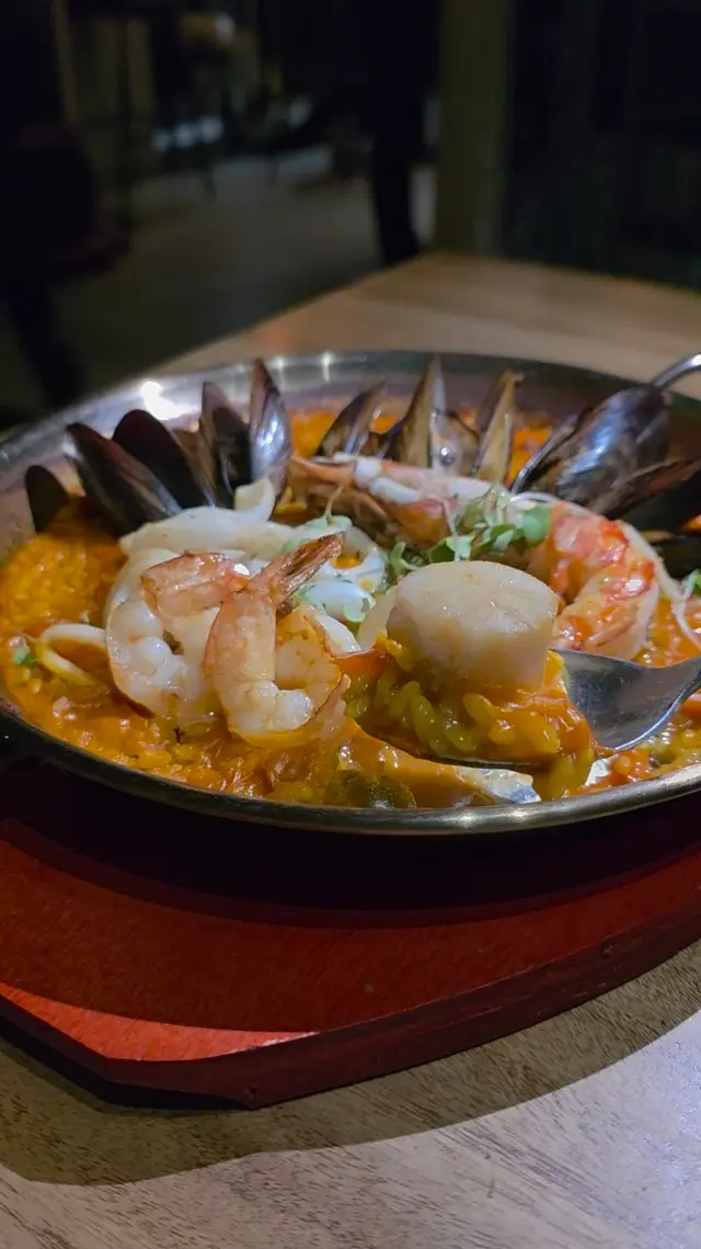 這是一間位於柯士甸與佐敦之間的餐廳, 地點有些隱蔽, 環境滿有格調, 掛了很多幅畫, 份外有藝術氣息, 是一個適合慶祝的地方 🫶🏻西班牙辣肉腸海鮮飯 $298用蕃茄醬做底, 蕃茄鮮味十足, 本身味道酸酸的, 再配了辣肉腸, 添上辣味就更加惹味, 再加檸檬汁會多一份清新感覺 😃 整個飯都非常creamy, 飯粒軟硬適中, 另外海鮮配料很多, 不過我認為整個飯重點是醬汁和飯 😬伊利比亞黑毛豬柳伴蘋果醬 $288廚師大概用慢煮方法製作, 每一塊黑毛豬都非常軟腍, 由於它有一定厚度, 所以偏有咬口。豬柳肉味濃郁, 中間有淡淡油脂香, 配上蘋果醬就可以達至中和效果 🤗明太子蟹肉西班牙蛋餅 $118蛋餅非常鬆軟, 裡面有大量蟹肉, 基本上每1口都會嚐到蟹肉 👍🏻 除了本身蛋香外, 加了明太子後會再多1份鹹香, 豐富了味道和層次但不會覺得太咸。焗芝士蛋糕配海鹽焦糖醬 $68酥皮包住芝士蛋糕後再焗, 非常酥脆, 帶少許牛油香 😚 可能焗了之故, 芝士份外香濃, 而且滑溜又細膩, 有入口即溶感覺 😍 相當有驚喜, 上次吃蘋果金寶都不錯, 只不過這個太出色了!黑松露野菌忌廉湯 $38Fun in the sun $65野菌忌廉湯含濃郁野菌味, 當中有少許野菌粒和攪拌後的野菌碎, 所以香滑之中有豐富口感 😊今次是二訪餐廳, 上一次已經覺得餐廳食物質素有水準, 想不到這次所點的比上次更加好! 👏🏻 當中最有驚喜就是芝士蛋糕! 可以為了芝士蛋糕來個三訪! 🤩…查看更多