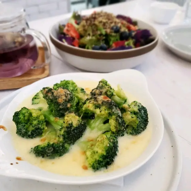 佐敦有Heart餐廳,地方寬敞,食物高質,與好友慶生的絕佳地方☺️ 我倆吃到撐著肚子走🙈 之後要逛逛尖沙咀消耗卡路里。.晚餐:🥣牛肝菌清雞湯+🦞焗龍蝦半隻配蕃茄汁 $268🥣 餐湯以杯盛載,以中式方法烹調,沒有加上忌廉的牛肝菌湯,令菌味尤其濃郁突出,我跟朋友都讚口不絕。🦞 意粉口感偏硬,每一條都掛上龍蝦汁,令人吃著吃著欲罷不能。大大隻龍蝦,雖然上桌是看到龍蝦有少許焦,但正因為經過烤焗,令味道添上層次。另外,蝦頭內有肥美的蝦膏,很邪惡呢!.🥦芝士焗西蘭花 $58上桌時芝士味撲鼻,芝士西蘭花這配搭冇得輸。.🥗超級沙律碗 $88這沙律的份量非常多,除了用上新鮮沙律菜,還有藍莓、士多啤梨、牛油果、藜麥、紫薯。整個配搭都是我喜愛的,非常健康滿足。沙律另配酸酸甜甜的柚子汁,個人認為不加也夠味道。食量偏少的女生應該吃過這沙律已經飽了。.🍰芝麻豆腐芝士蛋糕 $65這是生酮版蛋糕,由於用了豆腐所以質感不會太厚實。芝麻的味道很出,愛吃芝麻蛋糕的朋友絕不要錯過。芝士味偏淡不會太膩。.🍮法式焦糖燉蛋 $58燉蛋creamy,不會過甜,表面的焦糖份量剛好。很有心思地加上士多啤梨、藍莓和薄荷葉,賣相再加分。大推這甜品🌟.🫖寧神花茶 $48🍵抹茶latte $50查看更多