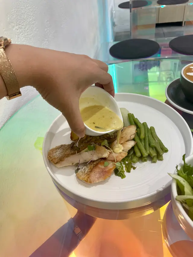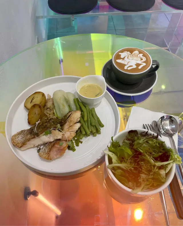Lunch時間就嚟佐敦呢間Cafe食個lunch,都好鍾意喺呢一間Cafe飲咖啡,裝修偏向白色小清新風格☺️沙律🥗(+$25)都有幾多菜,夏天新鮮爽口,比較多黑醋偏酸,好開胃鱸魚時菜青咖喱汁 ($128)有兩件魚,個皮剪得好香脆,加埋泰式青咖喱汁有啲fusion嘅感覺,有椰香仲有微微嘅辣度,唔會掩蓋鱸魚嘅味道👍🏻Latte好靚,Batista 好有心機❤️,拉左個靚靚獨角獸拉花🦄,咖啡就比較偏向Nutty,高質好飲查看更多
