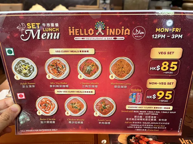 Hello India Restaurant & Bar (尖沙咀) 网址: https://s.openrice.com/QrLS0sK0A00 地址: 香港尖沙咀漢口道19-21號漢宜大廈1樓A及E號舖 电话: +852 23677489