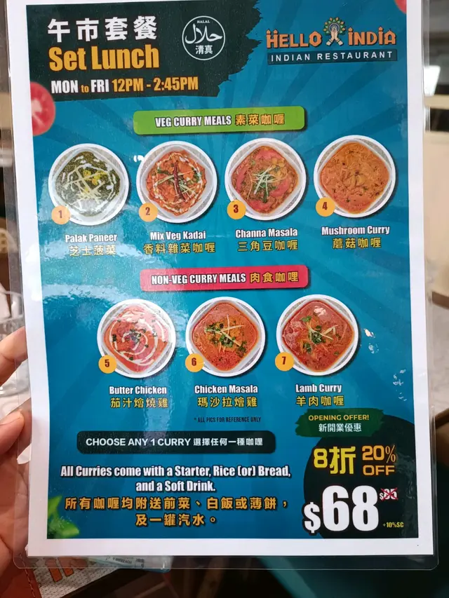 Hello India Restaurant & Bar (尖沙咀) 网址: https://s.openrice.com/QrLS0GQeF00 地址: 香港尖沙咀北京道71-77號誠信大廈3樓 电话: +852 23677489