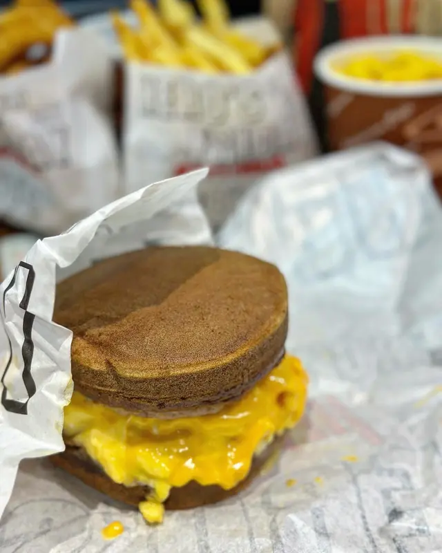 煙肉芝士包很經典的款式 煙肉芝士本來就絕配煙肉不過鹹 有肉香鹹口搭配 讓人一口接一口芝士完全是流心狀態 融合在包裏醬汁建議加多點 整體會更juice 豬柳班堡麵包皮做成鬆軟咖啡味鬆餅夾層有滑溜炒滑蛋 很厚的滑蛋有蛋香加上很嫩口配上鹹口豬柳芝士 餡料很配咖啡味鬆餅別有番風味整個包份量很足薯餅薄薄的薯餅 把早餐的份也吃回來剛剛炸好 特別香口我最愛吃薯餅 不需要點配已好好吃洋蔥圈洋蔥圈每塊都有相當厚度沾上番茄醬吃 很好吃外表炸得酥脆 有洋蔥香覺得比吃薯條來的香口和有洋蔥甜味…查看更多