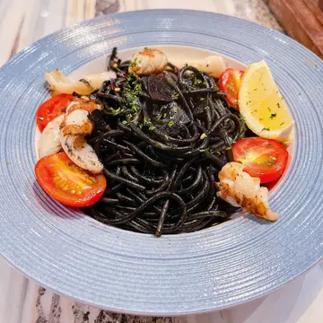 🍽•黑松露薯条🍟基本上对薯条完全无法抵抗 脆身薯条配埋黑松露酱正正•火辣墨鱼汁意粉🍝卖相吸引 微辣既墨汁伴爽身意粉味道唔错 鲜鱿鱼都好入味🦑只系食到成个咀都变左乌咀🖤•杂莓沙冰🍹夏日炎炎 正好要叹返杯沙冰酸酸甜甜透心凉够醒神•冲绳黑糖菠萝沙冰🍍喜欢菠萝仲要撞沙冰 解渴消暑必备最后又点少得甜品时间🍮•厚焗松饼 朱古力花生酱焦糖配杏仁雪糕 卖相已经被吸引 香蕉被满满焦糖铺满住 非常脆口连我不嬲都唔太好香蕉都完全收货松饼切开系软绵绵质地 连埋杏仁雪糕一齐享用 好味 即刻有幸福既感觉而且呢到倾计同坐得舒适 满意🧡…查看更多