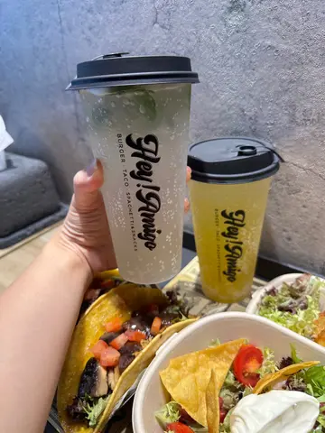 不知大家平时找餐厅是不是只看大街上的,其实在小巷的餐厅都会有惊喜。Hey!Amigo 是一间位于元朗的高质汉堡包小店。如果不是朋友吃过再介绍就会错过了吧。由于店内的座位不算很多,所以用餐当日都见不少客人都选择叫外卖。听说餐厅除了固定的招牌菜外,还会隔数月转一下餐牌。而且这里除了汉堡包外,还有墨西哥Tacos、粟米片和意粉。每款看起来都很吸引,价钱由HKD 58 起,加HKD 20 更可升级为精选套餐。Amigo 经典安格斯牛肉汉堡 (HKD 68) 第一次来吃当然要选安格斯牛肉。因为牛味最浓又多汁,而且这里的汉堡即叫即整、卖相吸引。牛肉油脂的比例刚好,口感松软,吃起来不会很腻。另外配料还有烟肉、煎蛋、番茄、生菜,不论是口感还是味道都非常丰富。石榴粟米片沙律 (HKD 88) 脆卜卜的粟米片增加了沙律的口感。微酸的石榴和酸忌廉很开胃,亦加入了藜麦、牛油果酱,所以都几饱肚。泡菜汁烟熏猪腩温泉蛋卡邦尼长通粉 (HKD 62)没想到这间店不止汉堡包不错,连 Pasta 都很出色。平时会觉得卡邦尼 Creamy 到好腻,但添了个有辣度的泡菜汁就解决问题啰。再加上温泉蛋和芝士,让长通粉更香更惹味。烟熏的猪腩质感非常柔软﹐油香满满还有一种独有的烟熏焦香。+HKD 20 升级做精选套餐,可沙律、薯条、Nacho's 选一和有跟餐饮品。我们升级了两个做套餐,选 薯条 (是薯角吧!?) 和 Nacho's。跟餐饮品+HKD 15 转成了特饮 -乳酸百香果爆珠梳打 & 乳酸荔枝爆珠梳打。后者喝落有荔枝味,不过就甜了少少。…查看更多