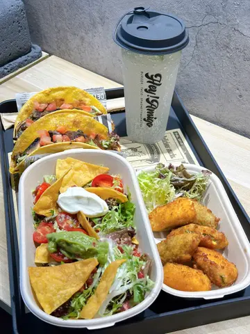 元朗呢间小店 置身小巷之中主打美式x墨西哥菜式快餐舖头唔算好大 但比到人温暖嘅感觉🩵好啱同屋企人朋友黎开餐最近仲开始做到会🍽️嚟紧有聚餐嘅朋友仔可以考虑吓😉-🔹Amigo经典安格斯牛肉汉堡($68)丰富之选 有齐汉堡🥩x煎蛋🍳x烟肉🥓一次过满足你几个愿望夹住蕃茄🍅生菜🥬中和油腻感汉堡包烘到微䁔脆口✅-🔹烤芝士香蒜牛油大啡菇蕃茄Taco's($58)值得一赞 小店有好多素食选择💯呢款taco大啡菇吸收牛油香气🤤配芝士劲邪恶😈一份有两件😆非常满足够晒饱-🔹石榴粟米片沙律($78)呢款沙律非常清新☺️除咗沙p菜 石榴酸酸甜甜好开胃😙配牛油果酱同芝士😋点粟米片一齐食正-🔹墨西哥烤粟米($45)利申 黑洞唔系特别钟意食粟米🙈但呢款烤粟米坚好食🌽表层沾满秘制酱汁烤完咬落仲非常Juicy😛-🔹炸墨西哥辣椒车打芝士 ($58)辣椒x芝士好特别呢个组合🤣第一啖入口微辣 系可接受嘅辣度中间嘅芝士有爆浆效果🤩加上外层炸过🥳特别香口-🔹海盐薄荷柠檬梳打($29)夏日热辣辣饮呢个啱晒🔥薄荷味唔会太chur 淡淡地易接受⭕️落𣳇海盐微咸🧂有种似饮运动饮品嘅感觉🤣-🔹百香果梳打($25)值得一赞 唔会死甜🥳底部有椰果肉 够咬口加分😚-P.s 闲日仲有学生餐供应🤓自选配搭…查看更多