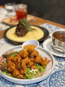 近排成日见到人哋介绍呢间喺土瓜湾嘅餐厅 见到几款食物包括甜品都好吸引 今晚终于有机会去试吓餐厅环境简单舒服 几适合朋友轻松聚餐 🔸 红酒慢煮牛面颊配薯蓉 $298千祈唔好睇小呢份牛面颊 份量几大 绝对足够二人分享 牛肉煮得软腍入味 带啲红酒嘅香气 另外配上牛肉肉汁 加落细滑嘅薯蓉一齐食一流 整体味道平均 系一道好唔错嘅主菜🔸 脆炸鸡软骨配四川酱 $98呢个超级推荐!脆炸鸡软骨炸得金黄香脆 份量又多 配四川酱好特别 个酱微辣 适合大众口味 系个一流小食 特别要配埋啤酒🔸手工啤酒见到餐牌有限定嘅手工啤 问了店员后 应该不定期会有唔同品牌唔同款式 今晚有香港本地酒厂出品嘅Kolsch品种手工啤酒 口感清爽 好适合夏天饮 更加适合配埋个鸡软骨😆🔸椰林飘香芭菲杯 $96我觉得呢度嘅甜品先系主菜 有窝夫、pancake等 全部都好吸引 可惜今晚太饱,只容许自己食个芭菲杯😆椰林飘香芭菲杯甜度刚好 椰味雪糕突出 而且有好多层次 有菠萝、青苹果、自家制custard酱和啫喱粒粒等 有心思而且好丰富…查看更多