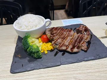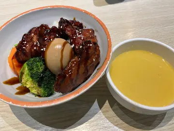 观塘本身已经多人,去到lunchtime就更加唔使讲,见到周围都排长龙嘅时候,呢间餐厅唔驶等,咁就试下佢啦! .佢有西式同日式既lunch set,我叫左个汁煮猪扒丼,佢系炸猪扒加上照烧汁,猪扒几香又唔算好硬,照烧汁够浓,系几好食~ 蛋系流心蛋,一咬开个蛋黄都好香,系几好食既!👍🏻 .野饮都几特别,可以拣果醋,我叫左杯青梅果醋,有自然既梅味,酸酸地几好饮~😄 朋友叫左个牛扒饭,我无食到唔知好唔好味喇~ .以上2个饭,猪就$77,牛就$108。味道虽然唔错,但其实都算几贵,我都明白点解会唔驶排队。如果唔赶时间,附近应该会有更抵既选择~查看更多
