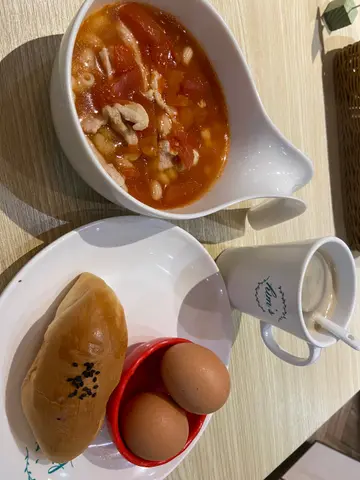 想起食早餐,尤其放假邪恶的沙嗲牛或餐蛋面都系不二之选偶尔来到官塘想食个早餐,再开展一日嘅工作一心想食餐蛋面同自己打打气再望下自己的肚腩为左健康都系唔好咁放肆经过hims 佢d位好阔落,又唔算多人可以耳根清静咁早餐环境完胜今次试佢的健康之选(下次食沙嗲牛先!)有一碗蕃茄鸡丝通粉,两只烚旦,一个自家制餐包,再有杯饮品$32,价钱已经系冇得弹蕃茄汤底唔似用茄膏开,有味之余又唔会太浓烈“乸”喉碗粉虽细,但有2只烚蛋,好够饱的杯咖啡好香,饮后有回甘餐包系自家制,软绵得黎又唔似食空气整体来讲,唔似平时食完早餐少少滞住的感觉食完好满足,健康又好味未必日日拣“健康”,但今次的经验好好😎查看更多
