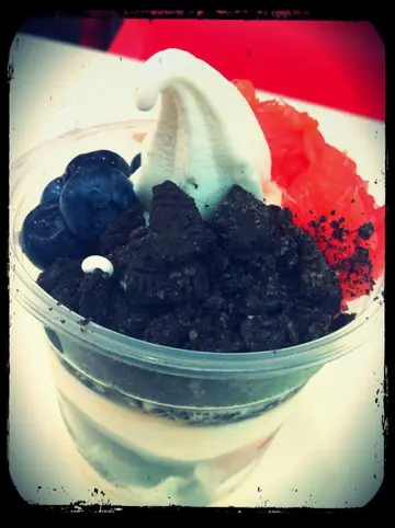 皆因我有两张coupon唔用唔抵所以我幅桌﹗如图﹐真系$3一个topping少成甘﹗你睇睇D oreo碎﹗有无搞错﹗同埋呀叔老板真系坚长气﹐唔该快手少少落单...今次终于有问我想要咩味yogurt了。同埋去次次去个mochi都系售罄。我怀疑根本未有过。如果正价$22加$9 3 toppings﹐我一定食到喊﹗30几蚊,crumbs一定好过呢度啰﹗ 现成topping我唔讲了﹐除左份量少之外﹐味道机本上唔会有错啦。蓝梅完全无味。但最小$3几粒我真系无oreo碎甘兴﹐一小羹﹐半块饼面都无﹐如果出面街价$15/gram﹐三蚊即系几多﹖你自己话有几离谱﹗