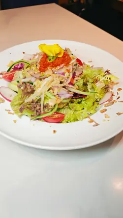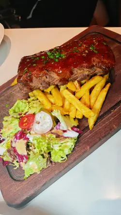 同闺蜜庆祝生日选了一间特别的西餐。味道精致又有惊喜。餐厅地点方便。店员都好nice。记得一早预订生日画碟。要提前一日。可以whatsapp图案比餐厅。会根据难度而收费。画工真系超级劲。见到隔离枱几款都画得好靓。上蛋糕时店员会准备即影即有。更会附上可写上心意的相架。好有仪式感啊!窗口位影相能够影到外面大厦嘅灯光。超美。泰式柚子蟹肉沙律清新爽口,柚子的微酸与蟹肉的鲜甜完美融合,口感层次分明,好开胃食到停唔到口。韩式玫瑰酱龙虾QQ卷卷意粉这里有几款招牌卷卷意粉。龙虾这款打卡一流,上桌好靓。龙虾肉炸过。肉质弹牙鲜甜。意粉弹牙。韩式酱汁唔辣。反而加入了忌廉酱汁口感好滑。酱汁香浓挂满整条意粉。好creamy。味道有创意。BBQ酱烧滋味猪肋骨配薯条猪肋骨外焦内嫩,酱汁浓郁惹味,配上香脆薯条,清新的沙律菜。份量都很大。大满足。伯爵茶巴斯克奶盖蛋糕茶味够香够浓郁,蛋糕软绵,奶盖香滑顺,甜度恰到好处,不会腻。我们点了半份。感觉已经足够。因为主菜都很丰富。重点当然是生日画碟。好有心机好可爱。闺蜜觉得很开心。仲夏菠萝梳打菠萝有果香,酸酸甜甜,解渴清新之选。梳打的气泡清爽。玫瑰荔枝果肉芝士奶盖推介。这杯饮品很有层次。有玫瑰和荔枝的香味。荔枝果肉鲜甜多汁。最顶层有芝士奶盖。奶盖浓郁香滑。优惠提醒:逢星期一至五午市惠顾堂食,即享四人同行一人免费,及全单免加一服务费。(以最低价钱的套餐为准,每位客人最低消费一个午市套餐)…查看更多