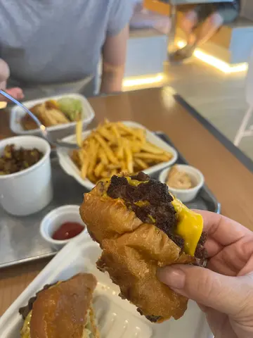 Honbo 呢间2020 年入选亚洲 Top 13 嘅手工 Burger 店,牛肉系由威斯康辛州入口美国牛肉,每日新鲜制作,肉质 juicy 牛味浓郁~ 连 pickle 都系由日本黄瓜自制腌制而成~诚意十足Honbo - 2x crispy beef, Cheese, Pickles, Onion, House Sauce - 系佢哋嘅 signature, smashed burger 嘅肉饼比较薄身,不过有两片所以都唔会好削,呢款嘅口感会比较焦香带点脆~Cheeseburger - Thick beef, Cheese, Pickles, Onion, Lettuce, House Sauce - 有埋生菜口感会更加清爽,神奇哋系完全唔会油腻Cheese fries (𠮶日无晒 tots 有啲失望... ) Cheese 味好咸香,薯条虽然油身但唔会好腍,又系一个系无得出错嘅配搭Chili Crunch Brussels Sprouts 脆辣椰菜仔,神奇哋食落带点老干妈嘅风味海港城呢间分店仲有海景相伴~唯一系价钱偏高,平均都要200一位唔算好亲民 (不过都真系好食过五人同 SS嘅)…查看更多