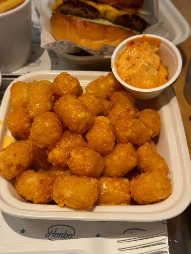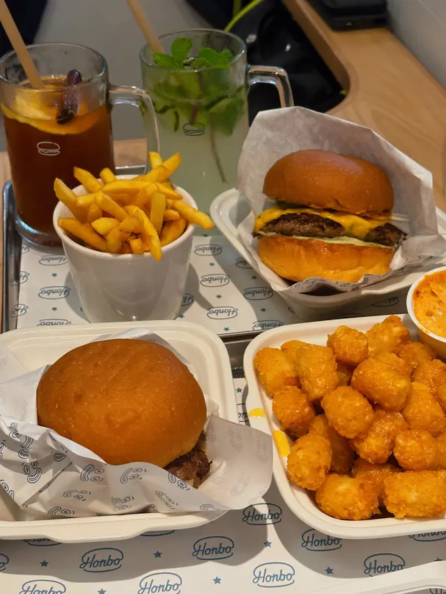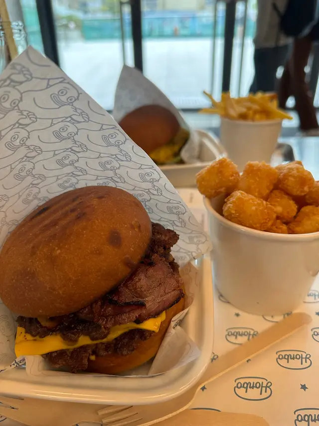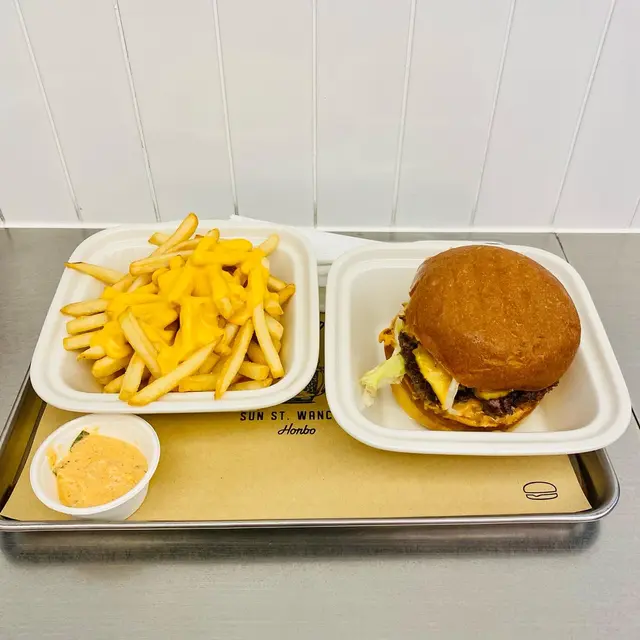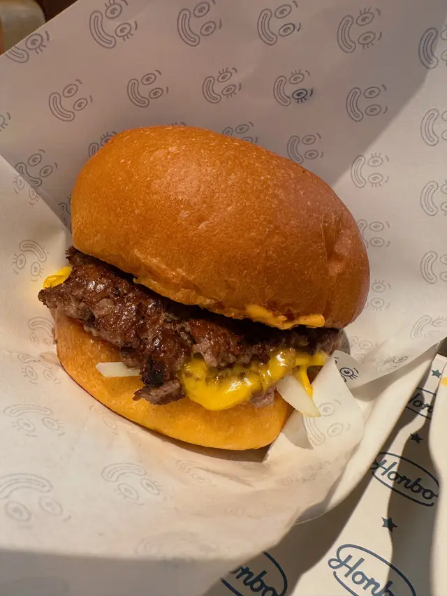 📍@honbo.burger | Hong Kong⭐️曾經入選為Bloomberg全球最佳漢堡.🍔 Double cheese burger $158麵包搽咗牛油,外面烤得鬆脆,咬落鬆軟🍞兩塊4orz嘅厚漢堡牛肉,肉質好juicy🥩加上2塊半溶芝士🧀️ 配搭埋洋蔥,生菜,酸瓜,同佢地嘅自家製醬汁一齊食,好味😋.🍟 Cheese fries $58🧀鍾意芝士嘅朋友必食 薯條份量多,新鮮熱辣,外脆內軟上面淋了滿滿的芝士醬,每一條都會沾到醬,另外仲有配埋一個辣醬,辣辣地都好惹味.P.S.原來沙田分店已結業🥲還有其他分店喺灣仔,尖沙咀,荃灣有興趣可以去試下~…查看更多