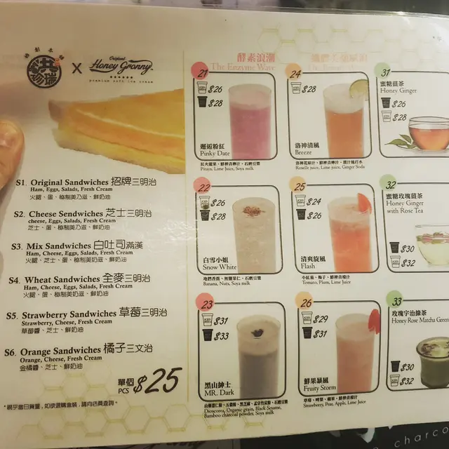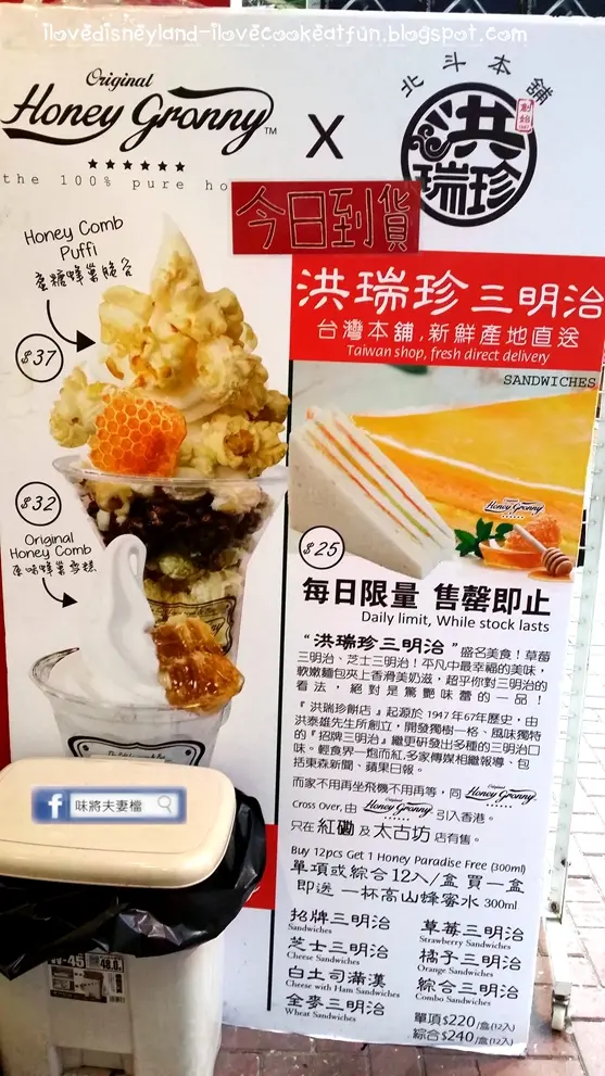 之前都聽聞過honey granny有洪瑞珍三文治買,店方第一次運到時,因為實在太多人排隊買,那時都好快售罄。今日返學時路經德民街見有新鮮運送的洪瑞珍三文治,我好開心地買了一份來試,我選擇了全麥洪瑞珍三文治$25,內有火腿、蛋、秘製美乃滋、鮮奶油,每天由台灣新鮮產地直送,所以食落的麵包都感到非常新鮮軟熟,餡料都好平均的薄身,有秘製美乃滋的香滑,入口都好冰涼,又有火腿我鹹香,整體味道都晤差,可是不是我杯茶 我都是較喜歡港式熱辣辣厚蛋的三文治多一些。