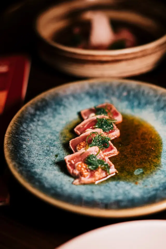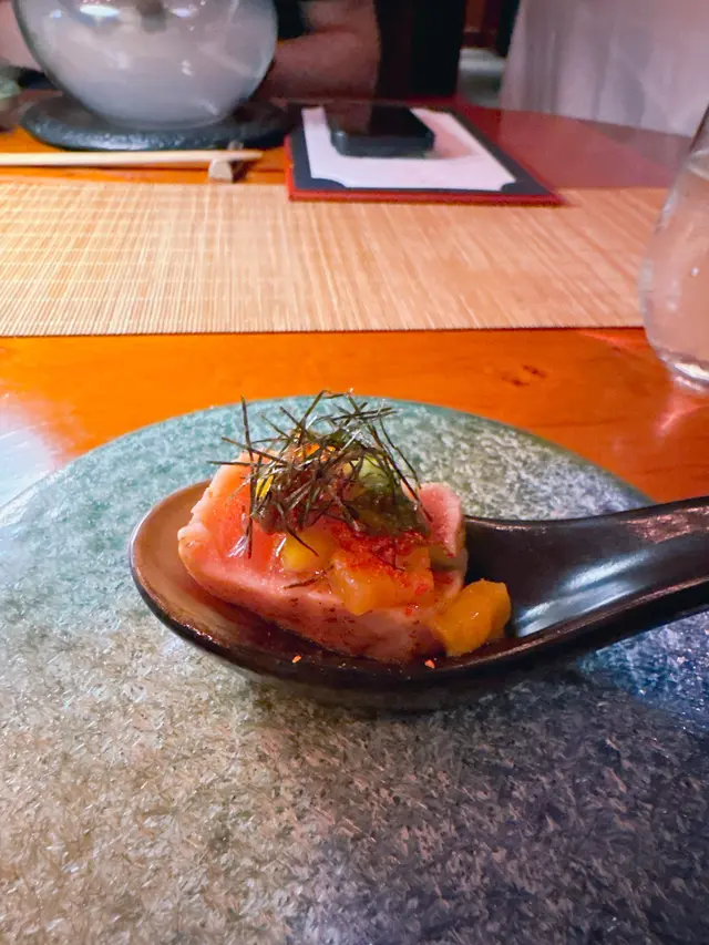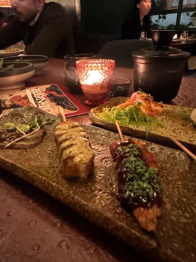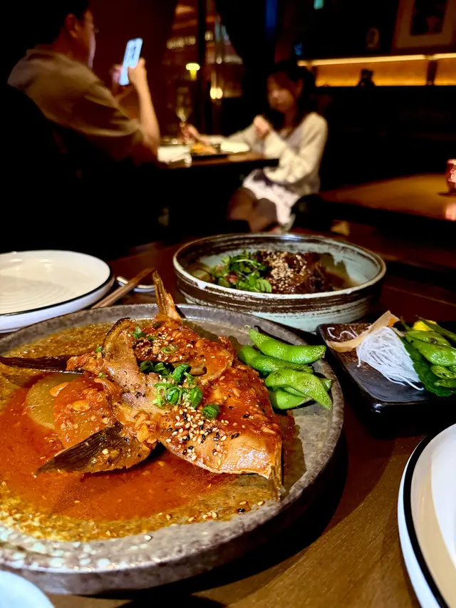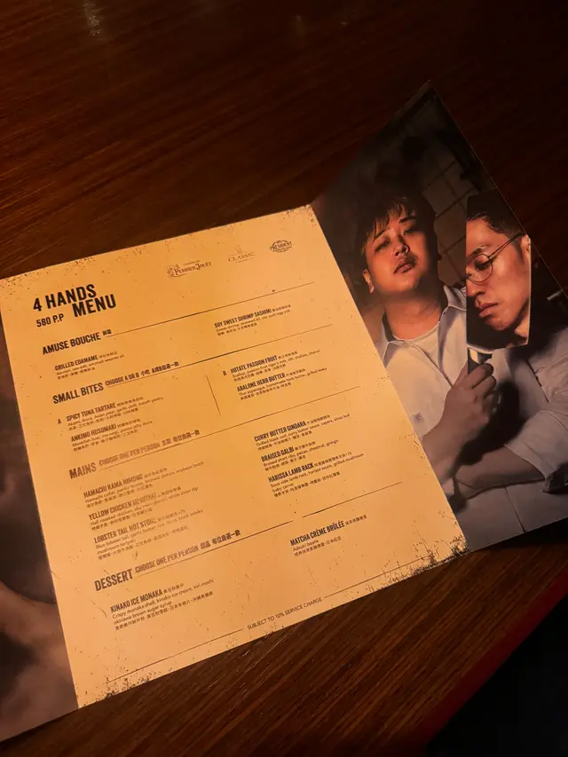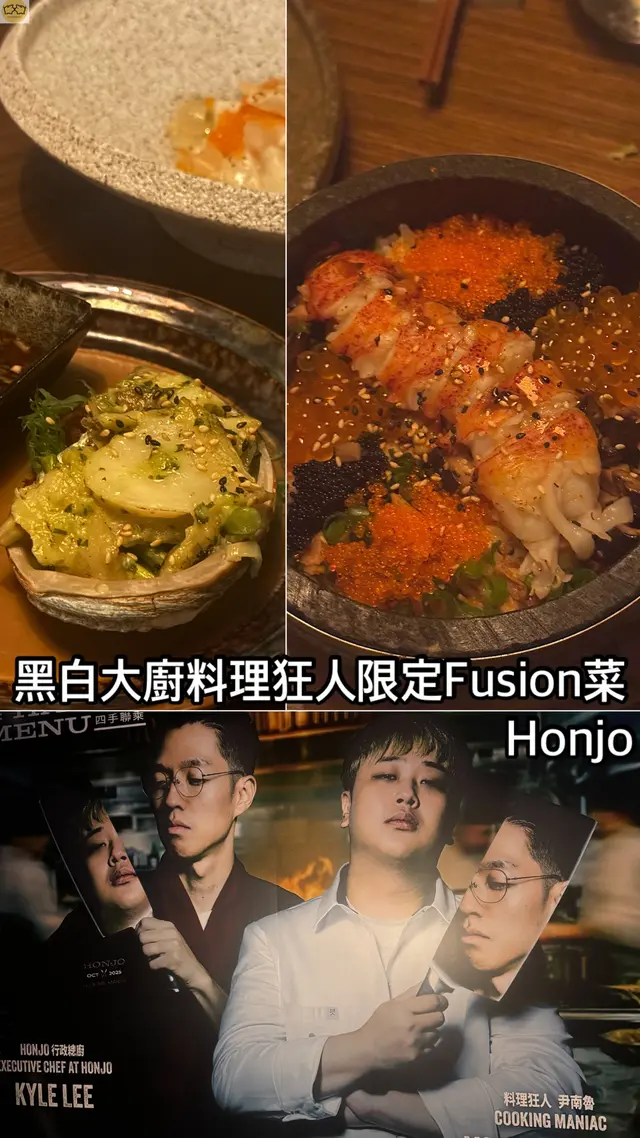 最近留意到《黑白大廚》料理狂人尹南魯及香港fusion菜餐廳Honjo嘅主廚Kyle聯乘推出4 hands晚宴!黑白大廚熱潮席捲全球,連帶實力派嘅料理狂人都號召力十足🔥Honjo推出嘅 hands晚宴供應至11月尾,而17-19/10就有料理狂人率先現身,好彩比我book到,更可以同兩位大廚合照,好開心🥰我睇開料理狂人做韓綜《拜託冰箱》固定嘉賓,一直都想試試佢嘅手勢😛今次呢個限定menu每位$588,每道菜普遍都唔錯,好多都用上新鮮海鮮,性價比幾高。不過我食嗰晚比較full,餐廳分兩輪,上菜較快,感覺匆忙咗啲😂4 Hands Menu $580pp前菜🫛烤日本枝豆、醬油甜蝦刺身簡單嘅開胃前菜,枝豆加入煙燻麻油、海鹽及海苔,味道幾香。甜蝦則只用少許海苔油及大豆鵪春蛋黃調味,突出本身鮮甜味😚小吃🍣辣味吞拿魚他他、鮟康魚肝細卷吞拿魚他他混合赤身、三文魚子、切絲麵糰等,麵糰做成薄脆,豐富菜式口感,不過辣味就唔係好覺。另一道鮟康魚肝卷,驟眼睇以為係海膽🤣入口都幾軟滑甘香😙加入柚子醋啫喱增添味道層次。🐚帆立貝熱情果、牛油香草鮑魚鮑魚彈牙兼好向牛油香草味,幾突出😋帆立貝則幾鮮味,加入咗熱情果虎奶醬、刁草及法國芫茜等香草,酸酸咪咪幾醒胃👍🏻主菜🐟牛油咖喱銀鱈魚呢道菜係料理狂人呈獻嘅招牌菜,銀鱈魚皮脆,魚肉超級嫩滑鮮味😋醬汁帶點鹹香及香料香,混入酸豆增添層次,雖則唔係好食到咖哩味,但整體嚟講味道都幾出色🫶🏻🥩栗子燉牛肋條牛肋條份量十足,連住筋位,可以食到筋位漿口嘅感覺兼牛肋肉啖啖肉嘅肉感😽我就覺得可以再腍啲,不過鍾意有咬口嘅都ok。牛肋條炆得好入味,醬汁鹹甜富層次。面頭灑上不少脆米,提升口感👏🏻🦞熱石龍蝦尾 +$78呢道菜有韓式石鍋飯嘅感覺,趁熱將飯、龍蝦尾及配料拌勻,一邊拌一邊聞到濃濃嘅牛油香😻龍蝦肉鮮甜彈牙,飯帶點飯焦,加上恰到好處嘅配菜,整體味道口感都幾出色😋甜品🍨黃豆粉最中、抹茶焦糖燉蛋估唔到甜品好出色,起咗畫龍點睛嘅作用🌟黃豆粉最中用薄脆嘅最中餅夾住黃豆粉雪糕,雪糕軟滑富黃豆香,裡面有不少雲尼拿籽,香味十足👏🏻焦糖燉蛋亦係上乘之作,薄脆焦香嘅焦糖加上甘醇嘅抹茶味以及唔太甜嘅紅豆,配搭出色😋推介指數(10分為滿分):8分…查看更多
