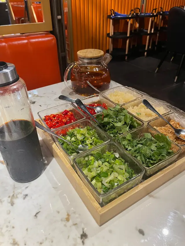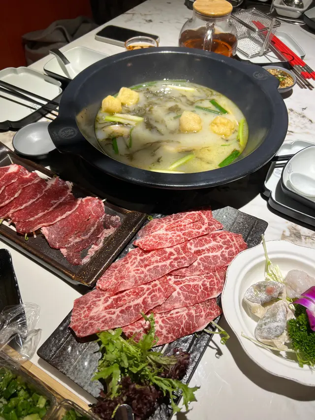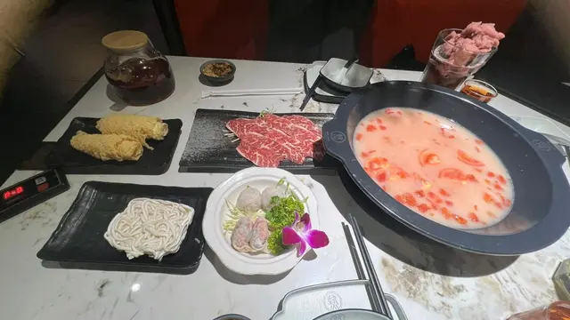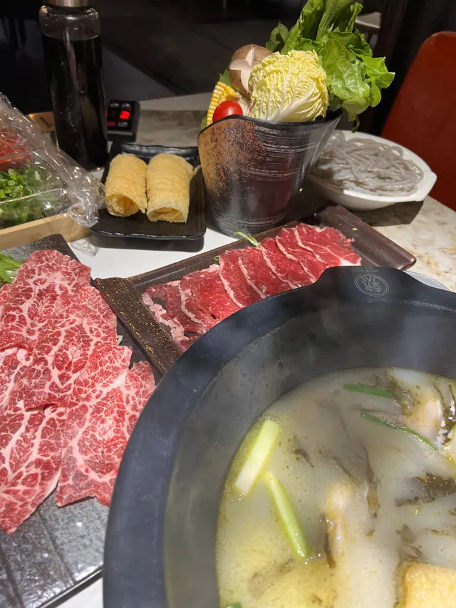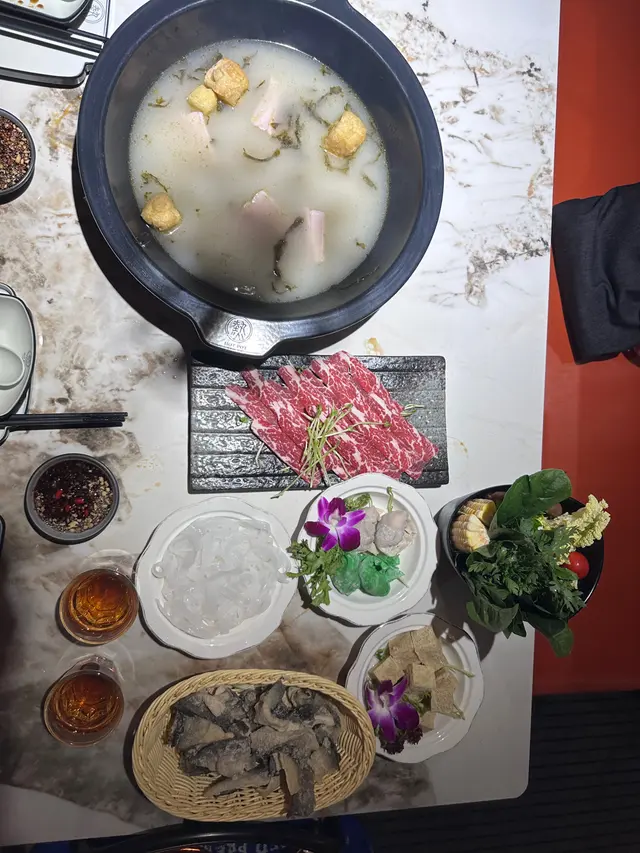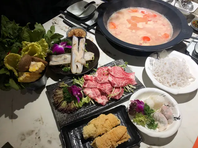 這裡的環境既時尚又舒適,讓人感受到溫馨的氛圍。餐廳內的燈光柔和,搭配著精心佈置的裝飾,如懸掛的燈籠和獨特的藝術品,增添了幾分雅致。花膠雞湯底香濃,雞肉鮮嫩,湯汁清澈,散發著淡淡的香氣,讓人每一口都感到滿足。牛頸肉的肉質滑嫩,油花分佈均勻,入口即化,搭配薯粉則增添了口感的層次。生菜的清香、西紅柿的甜美,還有香菇的鮮味,適合搭配湯底,增添風味。手打蝦丸色澤透亮,口感極為彈牙。每一口咬下去都能感受到蝦肉的新鮮與鮮甜,外層滑嫩,內裡充滿了蝦的鮮香,彷彿能感受到海洋的味道。墨魚丸每一口都帶有墨魚的鮮美,並且有微微的海味。炸魚皮外酥內脆,金黃酥脆的表面讓人忍不住想咬一口。每一片都充滿了鹹香的味道。…查看更多