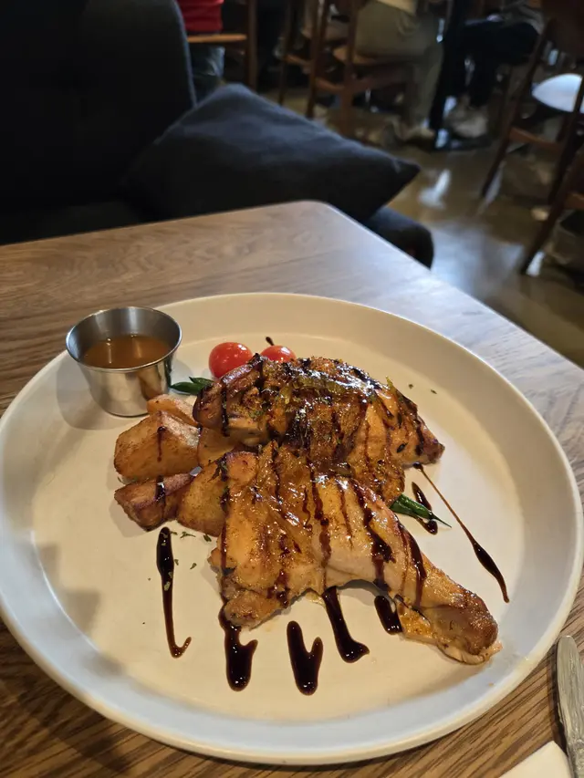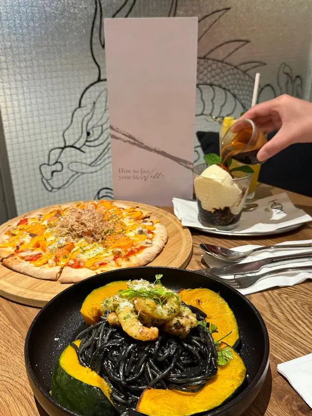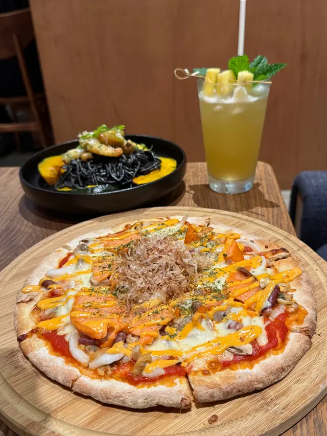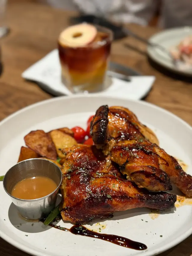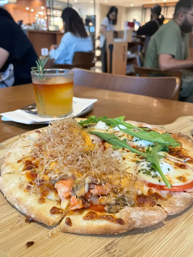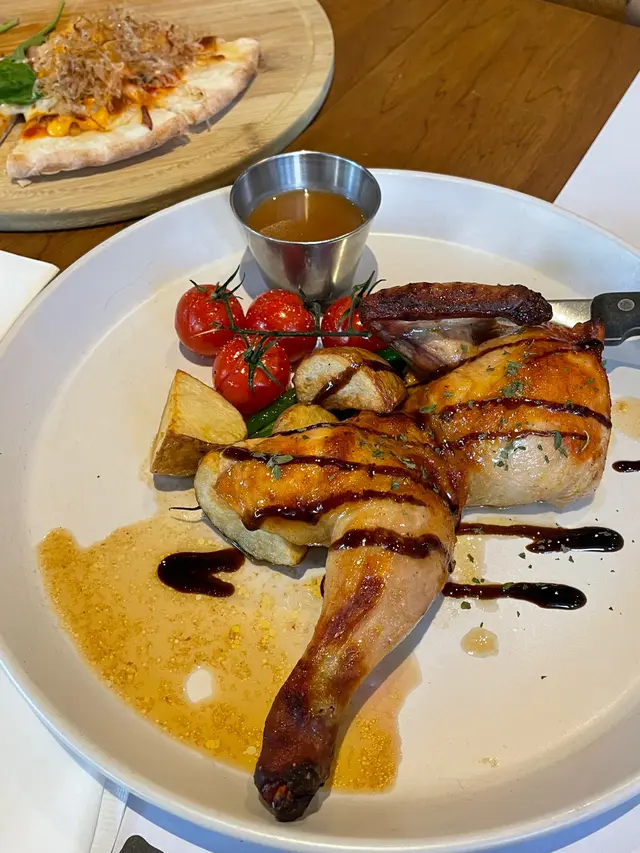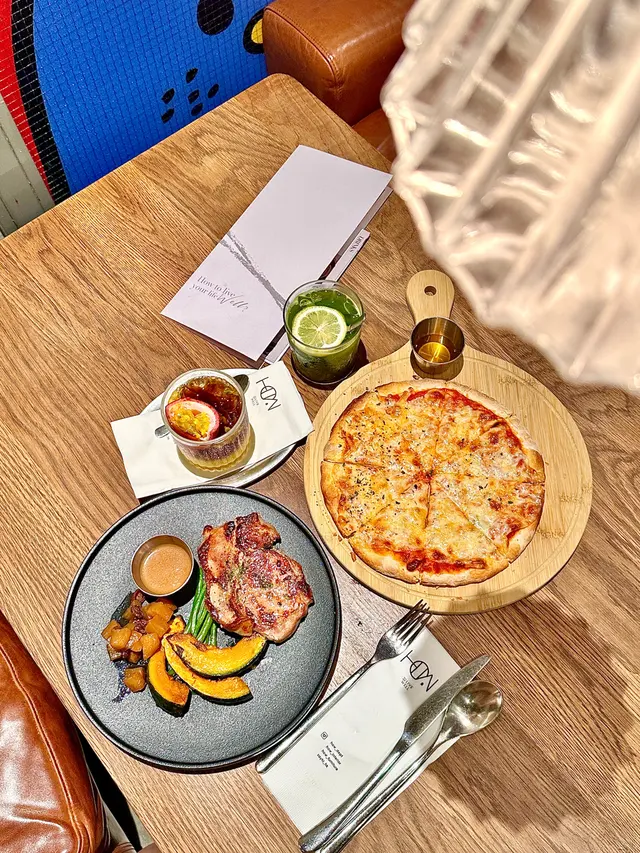繼上次嚟 How To Live Well 飲咖啡☕️之後,今次同朋友再嚟嘆返個 chill lunch!真心推介俾大家!💖餐廳環境以溫暖嘅木系🪵為主調,柔和嘅燈光💡令人感覺好舒服,好啱同朋友傾吓計hea吓✨。我哋叫咗半隻「柚子蜜烤雞」 share。雞肉烤得啱啱好,外皮香脆,入面嘅肉質鮮嫩多汁,柚子蜜嘅甜味滲透晒入雞肉裡面,非常惹味!😋 配菜方面,烤薯仔🥔同烤蕃茄🍅都好出色,簡單調味就已經好好食,份量都好足夠!另外仲跟一碗甘荀薑湯🥕,暖胃又健康!Pizza🍕方面,我哋就揀咗雙拼口味(加$28),可以一次過試晒「水牛芝士薄餅」同「海鮮薄餅」兩種口味! Pizza有 9 吋同 12 吋揀,我哋叫咗 9 吋,兩個人 share 啱啱好。薄餅餅底香脆,餡料豐富,水牛芝士嗰邊奶香十足,海鮮嗰邊就充滿鮮味,兩個口味都好好食!👍🏻飲品方面,朋友叫咗期間限定嘅 Charcoal Latte🖤,咖啡味香濃,帶有淡淡嘅炭燒味,幾特別!我就叫咗 Seasonal Special Drinks 嘅 Circular Cocktail🍹(Gin + Lime + Pineapple Juice + Soda),酸酸甜甜,非常清新,好啱夏天飲!☀️餐廳仲有無限 free wifi 提供,朋友走咗之後,我仲留低做咗陣嘢💻!整體嚟講,環境氣氛同食物都好正!👍🏻 下次會再嚟!…查看更多