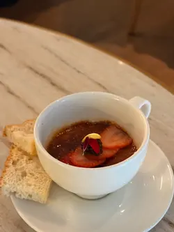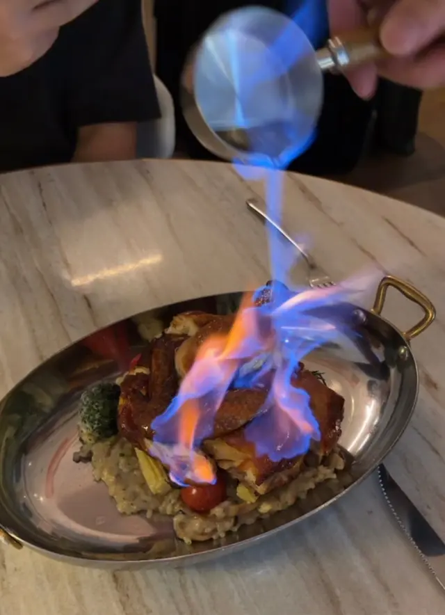 平日喺中环收工,去咗呢间性价比超高嘅法式鱼子酱餐厅🇫🇷环境方面都相当有格调,平日去人唔多坐得好舒服。员工亲切友善,店舖经理都几热情健谈,会为我们介绍每一道菜式,转换菜式嘅时候都会帮我哋换埋新嘅餐具🍴用餐体验好高级。餐前小食已经俾鱼子酱我哋搽面包,鱼子酱都粒粒饱满,唔够仲可以refill我哋两个人嗌咗四个courses嘅餐,包括前菜,汤,主食和甜品。头盘食咗焦糖鹅肝moose,主食蟹肉pasta啲意粉好烟靭有咬口,酱汁啖啖蟹肉🦀仲有火焰烤鸡🍗劲爆汁,层皮系脆嘅,鸡肉好嫩滑。上菜嘅时候会淋上Rum酒再点火,好有仪式感,打卡一流📸下面嘅Risotto都系好高水准,creamy得黎有咬口最后系餐厅推介鱼子酱牛乳雪糕🍦,鱼子酱同雪糕好夹估唔到四百蚊唔洗就可以喺中环食到呢种级数嘅餐厅👍🏻…查看更多