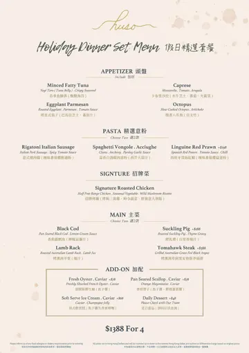Huso 是一家位于香港的餐厅,以其创新的菜单和精致的用餐体验而闻名。这里的料理融合了多种风味,特别是中西合璧的特色,吸引了许多食客。餐厅内部装潢现代而舒适,提供了一个适合聚餐和庆祝的环境。Huso 的招牌菜包括新鲜的海鲜料理和精致的肉类选择,特别是他们的生蚝和烧烤菜品。此外,餐厅还提供多款精选的葡萄酒和创意鸡尾酒,以搭配不同的菜肴。如果你对于美食和独特的用餐体验有兴趣,Huso 是一个不容错过的选择。建议提前预订,以确保能够享受到最佳的服务与美食。…查看更多