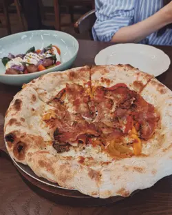 之前知道有间位于将军澳几出名嘅pizza但嫌太远冇去 好彩开左分店 就去到近D嘅大角咀🥺附近一带都系好出名嘅餐厅劲想慢慢打卡晒!呢间环境好大 门口白色简约入面就小清新木系风 空间感好大 坐得都好舒服!mark定左D必食 好彩都差唔多试到晒😗而且 坐系厨房门口正对个边真系好香 系劲想下一碟送来我地度🥺🍝香煎手工薯团配青酱💰158呢个就系bookmark左劲耐的薯团!gnocchi系好多义大利餐厅都少见 但之前系澳洲食过几次已经爱上了首先卖相好靓 薯团煎到金黄色 上面有刨成薄快嘅芝士同椰菜花 经过香煎全部都散发著香气薯团煎得比较硬身 入面芝士味唔算好突出 加青酱味道强烈D 但个人钟意比较淋芝士比例较高嘅薯团🍕灯笼肠布拉塔芝士薄饼💰198食唔到金文毕芝士觉得呢个都算吸引卖相有D似fiata嘅大气孔pizza 不过唔系㶶边 饼底会干身D 但我钟意咁有咬口上面嘅mortadella薄切好好味!兜住burrata其实又冇话好漏 加埋开心果可能会有小小😂整体都几好 但会想试下晋文毕芝士或者茄汁底多D🧁三重芝士梳乎厘💰138呢个真系是日最佳 睇个名系咪好似甜品呢 其实系antipasti中间系梳乎厘(咸版)加埋芝士隔离围住嘅就系菠菜同埋椰菜花 呢两样绝对系沟芝士最好味嘅蔬菜!整体就系非常融洽 好好味😭整体来讲坐得好舒服同埋野食真系高质好食好香 色香味俱全 但我地冇book所以要1个钟内食晒 都够时间的如果真系想同frd 聚会耐D可以book定先!…查看更多