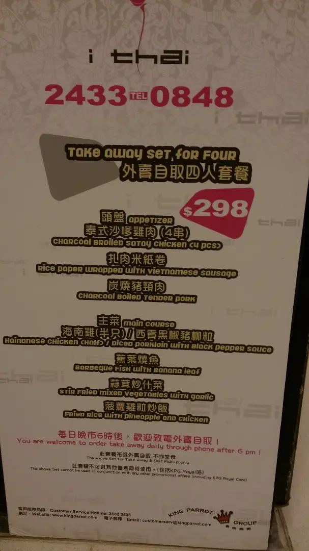 I-thai (青衣) 网址: https://s.openrice.com/QrLS0pdW000 地址: 香港青衣青敬路33號青衣城3樓302號舖 电话: +852 2433 0848