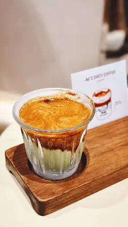 -86度髒髒咖啡 ! jbyc等级42025-10-0754 浏览 关注 今期討論度好高嘅 -86度髒髒咖啡 !4點左右已經見到超多人排緊隊,仲有唔少遊客黎朝聖。不過上菜速度都好快,等一陣就有位,亦可到鋪頭外面坐上石壆。負86度髒髒咖啡 有原味同開心果味揀,我地梗係兩款都要試晒啦~ 咖啡味超濃郁,香氣十足,入口仲帶微微苦味,啱晒鍾意重口味咖啡嘅人。奶滑又順口,飲到最底仲有啲似冰沙咁嘅奶結霜,記住唔好浪費,畢埋嚟食先至完整! 不過記住要快手打卡影相,因為最佳品嚐時間係40秒內,拖太耐會影響口感!飲完仲送隻可愛杯仔,可以拎走做紀念🫶🏻Affogato我哋揀咗綠茶味同焙茶味~ 兩款都茶香十足,唔會太甜。雪糕係用北海道8.0牛奶雪糕,奶味勁香濃,軟滑到不得了,就咁食已經好滿足!成件事就係又睇得又食得,打卡一流,味道又唔會失望,絕對值得一試再試!…查看更多+ 17以上食记乃用户个人意见 , 并不代表OpenRice之观点。赞好分享-86度髒髒咖啡 ! Ice Bean Cafe https://s.openrice.com/QrLT0PBXU00检举 张贴 评分5味道5环境5服务5卫生5抵食推介美食-86度髒髒咖啡-86度髒髒咖啡 (開心果)用餐途径堂食