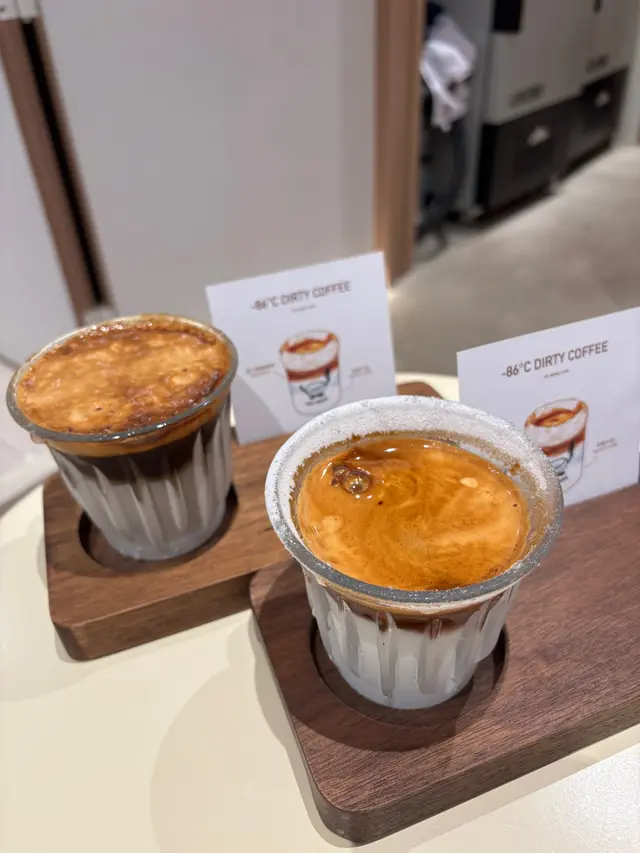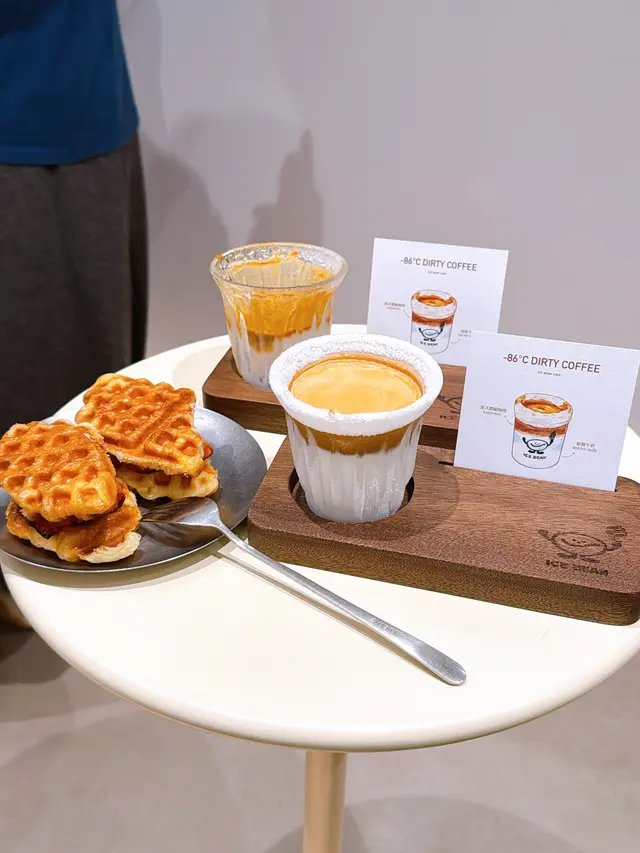 ☕️ -86°C Dirty:極致嘅霜面來自店家將杯子放入醫學級雪櫃,冷凍至少12小時嘅堅持。熱 espresso 即場淋下時冒起嘅輕煙,喺霜面上短暫暈開,店主友善提醒:「記得黃金30至40秒內飲完呀!」熱燙嘅咖啡液醇厚濃郁,帶明顯嘅堅果與焦糖香氣,質感幼滑如絹。隨著傾斜嘅角度,下層冰涼嘅特調牛奶緩緩湧入舌尖,嗰陣甜潤綿密嘅奶香瞬間化開,與咖啡嘅濃烈形成溫柔對比。最妙嘅係中段黃金時刻嘅轉變——隨著冷熱喺杯中交融,溫度從「熱」轉為「暖」,再漸漸過渡至「冷」。咖啡與牛奶喺溫差中自然混合,創造出如咖啡味軟雪糕般嘅第三重口感。佢哋特調嘅牛奶明顯比普通鮮奶更濃稠綿密,甜度克制,卻完美承托起咖啡嘅厚重。三十秒內,一杯之間,從熱燙到冰涼,從濃烈到清甜,層次分明。🍦 蓮花脆餅軟雪糕牛角包窩夫(北海道8.0牛乳雪糕)試完咖啡,當然要試甜品。牛角包窩夫焗得恰到好處,外層酥脆,內裡保持住牛角包特有嘅鬆化層次,牛油香氣樸實誘人。而最驚喜嘅係上面嘅軟雪糕——店家選用北海道8.0牛乳製作,入口瞬間便知不同:質感極致幼滑,綿密如細雪融化喺舌尖,奶香濃郁醇厚卻毫不甜膩,帶住天然乳脂嘅甘甜。與焦糖鹹香嘅蓮花脆餅、牛油酥香嘅窩夫同食,冷熱交織,濃淡相宜,簡單嘅組合因頂級食材而美味非常。小店人流不絕,不過店內各人有著流暢嘅默契,沒有催促,沒有慌亂,流暢地製作出一杯杯香濃嘅咖啡及款款美味嘅食品。…查看更多