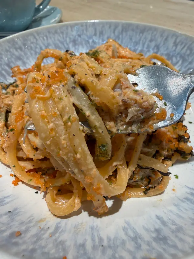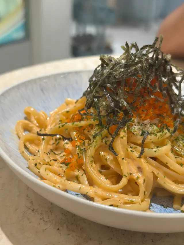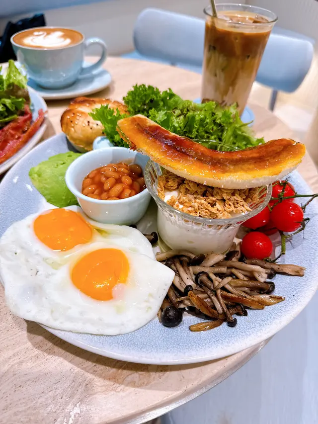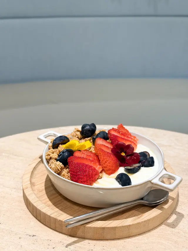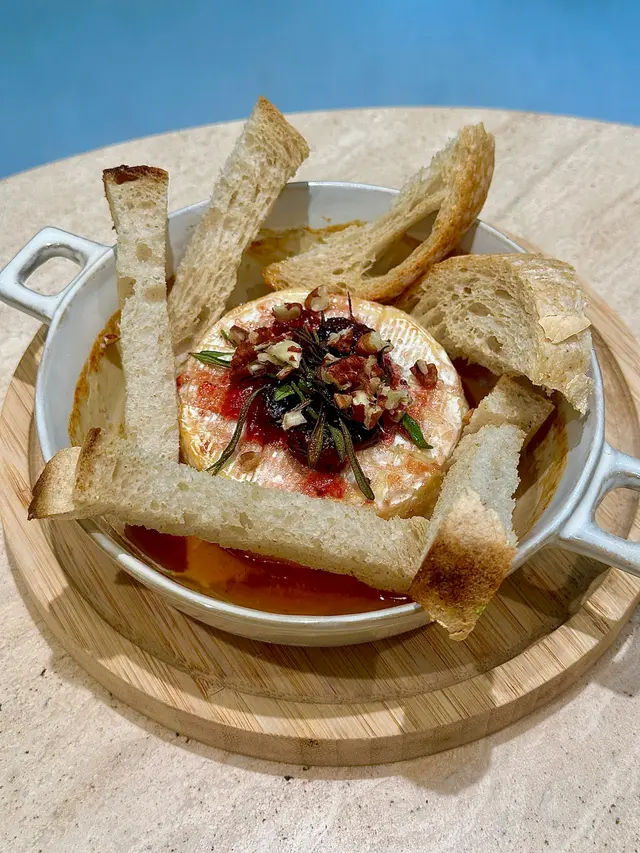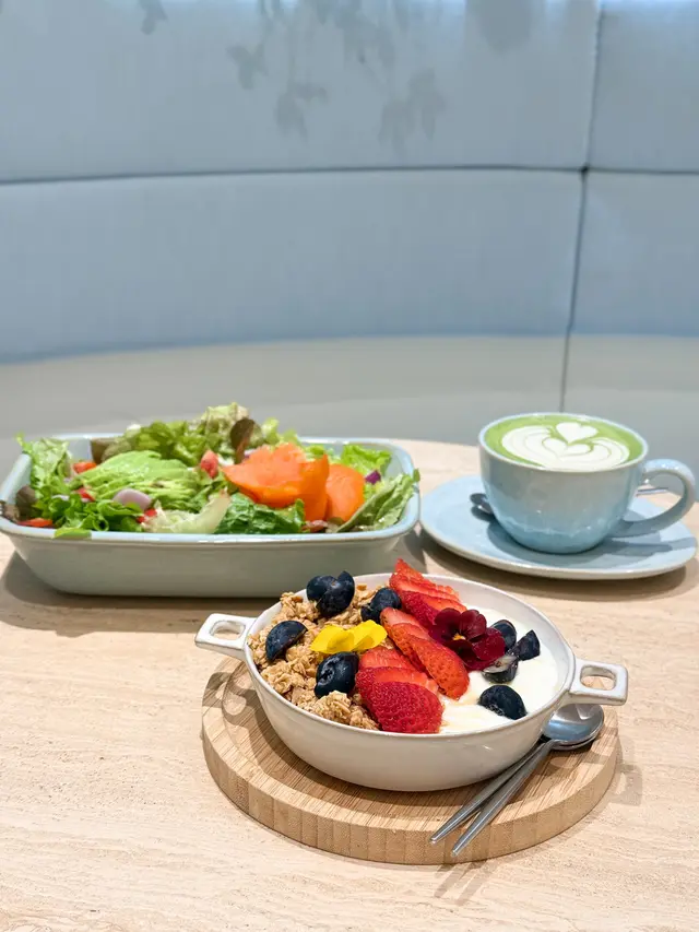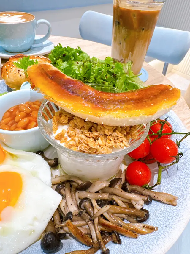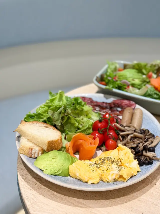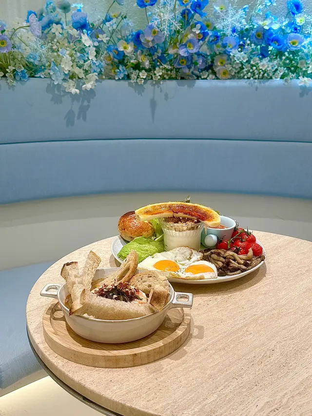 餐廳:in:joi (灣仔)地址:灣仔皇后大道東141-145號恆山中心地舖香港寸金尺土,好多餐廳都冇乜空間感,最近經過灣仔皇后大道東呢間IG-able Cafe——in:joi ,比佢哋嘅裝修設計所吸引咗而入去🤩打破傳統餐廳格局,喺門口已經見到in:joi擁有樓梯級座位,可以俾人坐喺梯級上食嘢飲咖啡☕️,顯然同出面灣仔鬧市形成對比,坐喺度零舍悠閒,梯級上仲有一隻巨型熊啤啤陪你打卡影相📸,一個人嚟都唔怕冇人陪啦🐻,唯一注意喺著短裙嘅女士要小心走光⚠️。上完樓梯仲有卡位同圓桌座位,餐廳行簡約風以白色同淺藍色為主調,有一種藍天白雲同光鮮嘅感覺☀️✝️香烤嫩牛排沙律 $128牛排控注意‼️,多汁帶有濃郁肉香又軟嫩嘅牛排條🥩,配埋新鮮沙律菜🥗、蕃茄、青瓜同紅洋蔥🧅,淋上特製醬汁,清新有層次,食完一啲負擔都冇😛✝️手工日本山藥雞肉丸焗意粉 $128呢款焗意粉好有心思💯,自家製雞肉丸有6粒,當中加入日本山藥,口感嫩滑有雞肉香,再配上香濃番茄醬同芝士焗粗管麵,雖然個人覺得鹹咗少少,但勝在有拉絲而且香味撲鼻,食落超滿足😌✝️黑碳雙層芝士貝果 $48芝士控必試🧀,竹炭bagel夾住熱溶馬蘇里拉同車打芝士🥯,鹹香濃郁熱辣辣,口感煙韌軟熟,配咖啡一流👍✝️港式奶茶焦糖燉蛋 $88甜品時間到🍮,港式奶茶融入法式燉蛋,敲碎脆脆焦糖面,就品嚐到淡淡奶茶香、用新紀元卵製成嘅燉蛋,入口綿綿即融,蛋香濃厚🥚,另外仲有一球幼滑嘅豆腐味雪糕🍨✝️Cappuccino $44用咗House-blend 咖啡豆,喺三個唔同國家嘅混合豆,有靚靚嘅拉花之外,有層次嘅Nutty風味加上奶泡嘅綿密細膩令人沒齒難忘🥳…查看更多