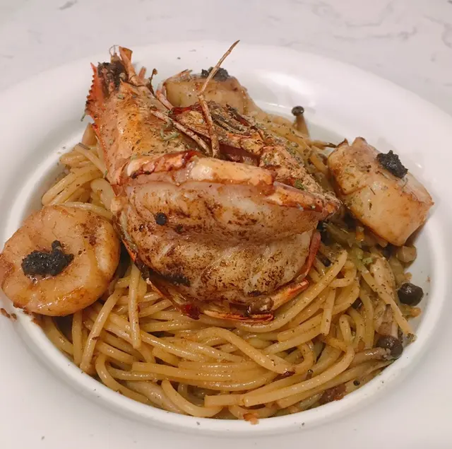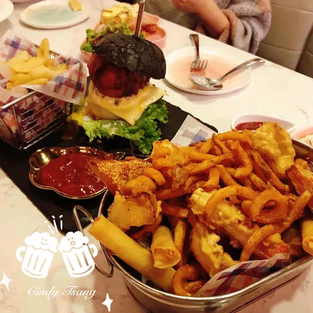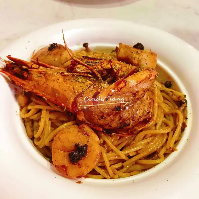 推介🔥-黑松露炒鮮帶子虎蝦意粉冇乜特別黑松露唔算特別突出意粉亦都唔係炒得好香🧐-招牌漢堡炸物拼盤都係正常發揮